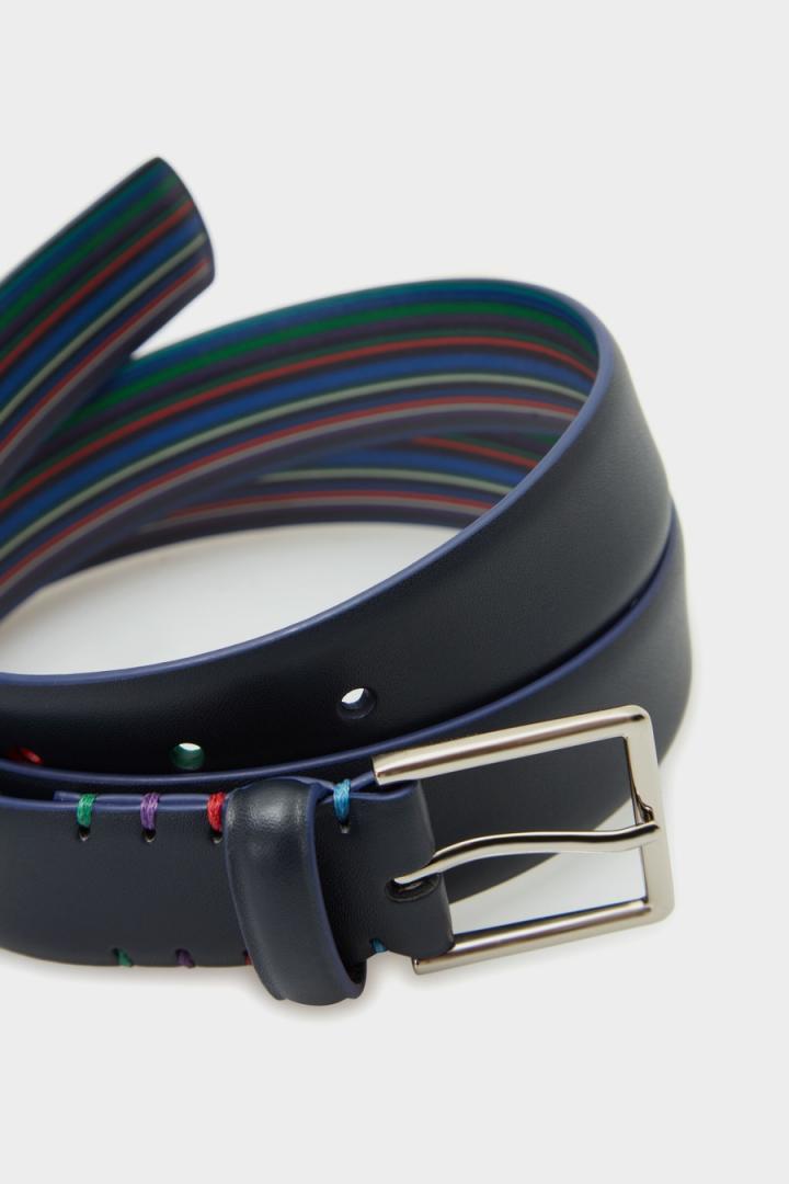 Cinturón de piel con detalle de pespuntes en secuencia de colores PG y lujado a contraste. Hebilla cuadrada metálica personalizada. Ancho: 3,2 cm…