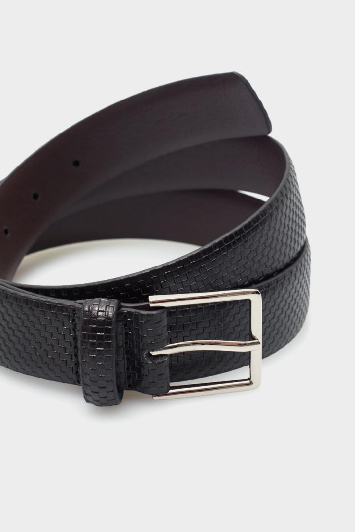Cinturón de piel con grabado de cubos. Ancho: 3,2 cm…