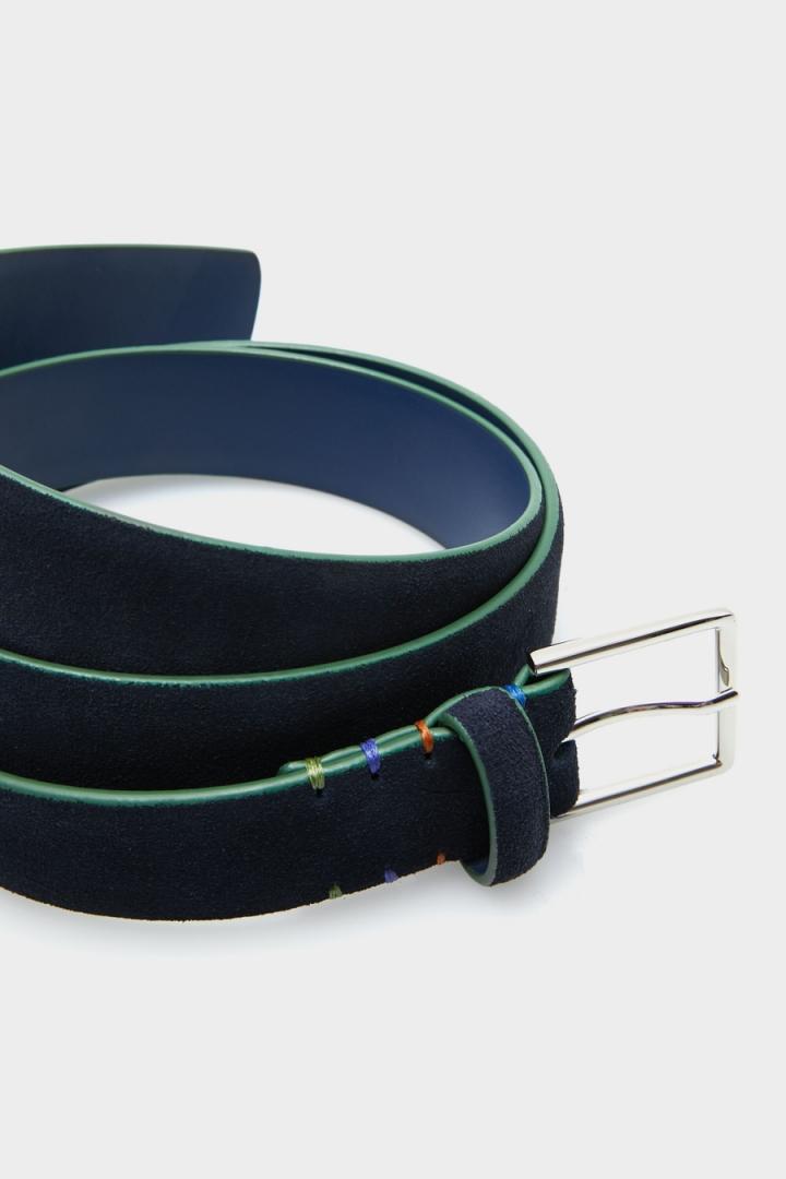 Cinturón de serraje con detalle de pespuntes en secuencia de colores PG y lujado a contraste. Hebilla metálica personalizada. Ancho: 3,2 cm…