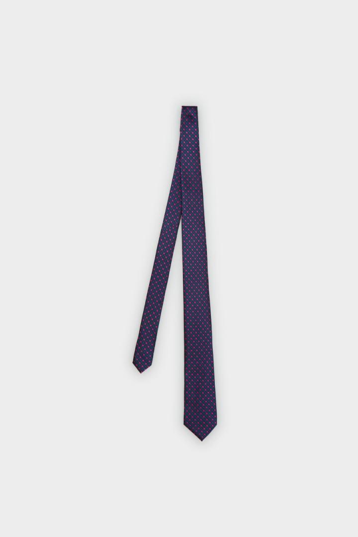 Corbata en estructura de seda con diseño de cubos a contraste.