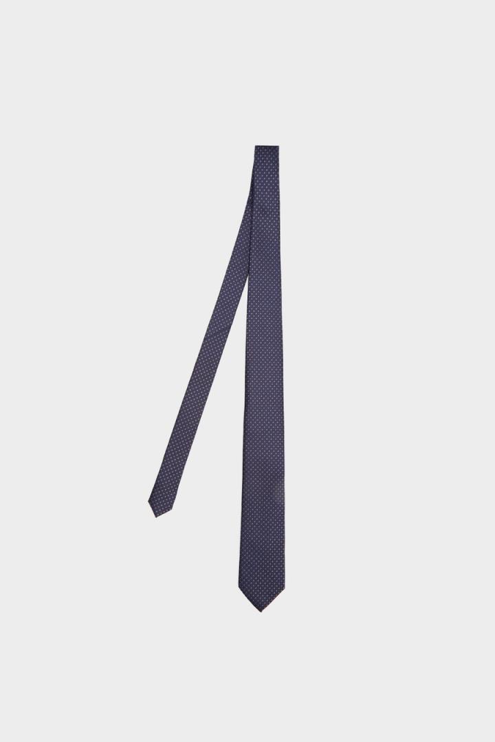 Corbata en seda con diseño de cubitos sobre fondo liso.