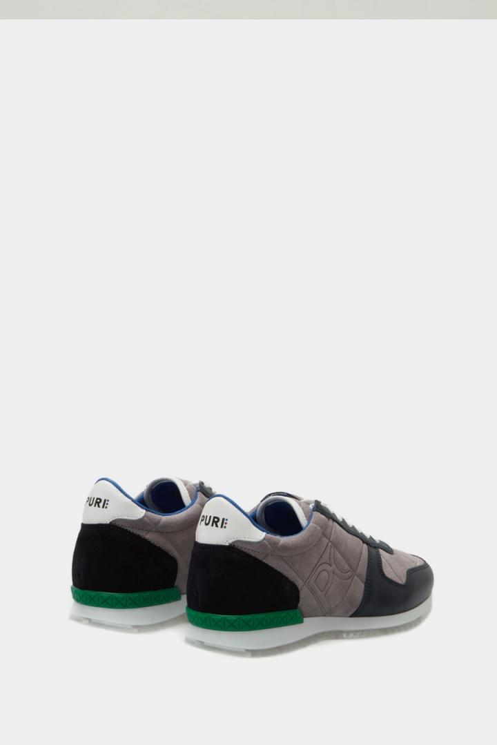 Deportiva de hombre en ante con el grabado Stamp de cubos y logos PG y paneles de piel a contraste. Talón de piel a contraste con estampado PURE. Cierre con cordones y suela de goma personalizada.