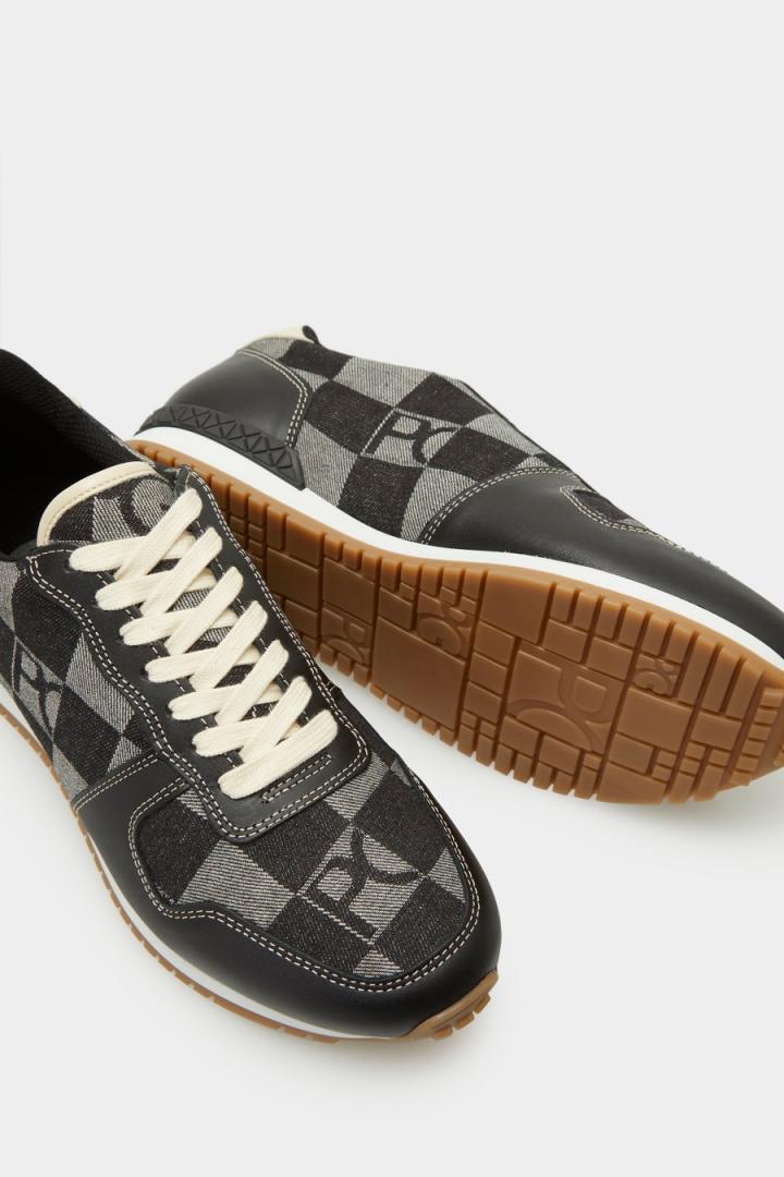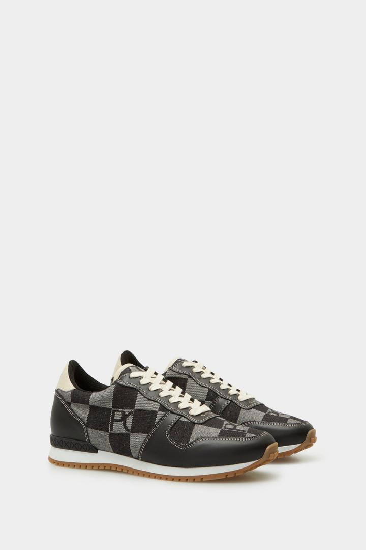 Hombre Purificacion Garcia Deportiva piel y Lona Cubos Denim Negro | Deportivas