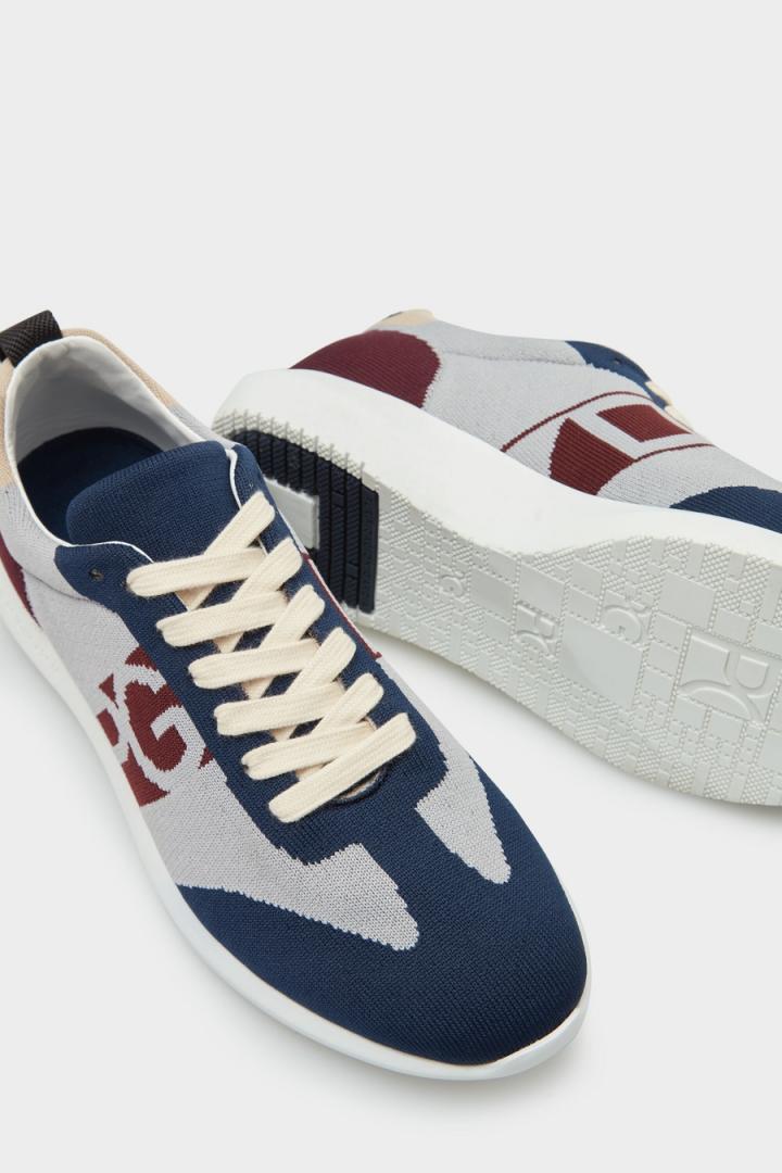 Deportiva de hombre en tejido de punto con diseño de Cinta PG a contraste. Talón, tirador trasero y logo cubo a contraste. Cierre con cordones y suela de goma personalizada.