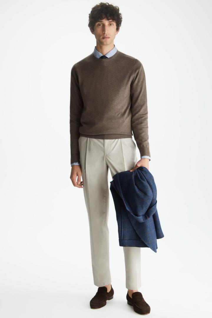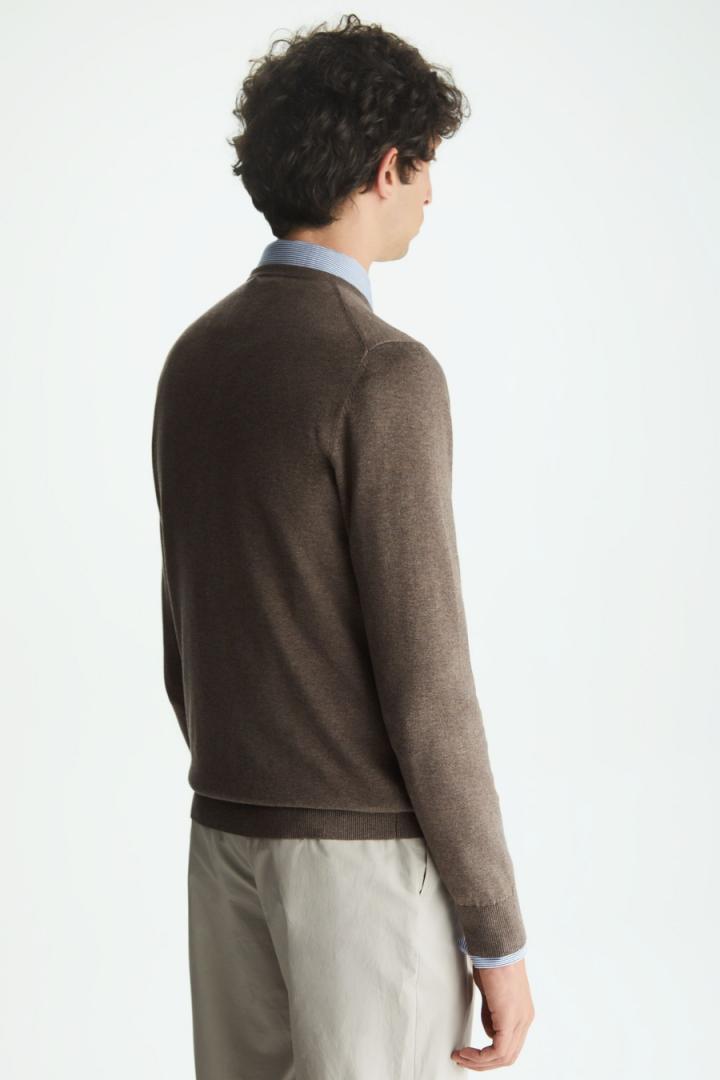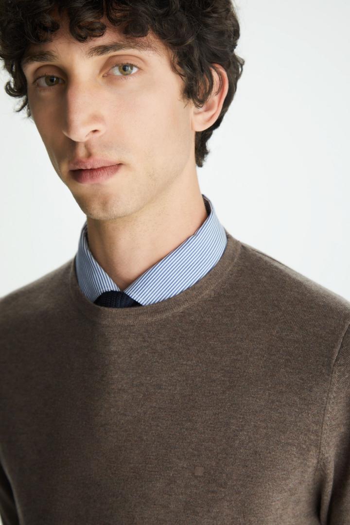 Jersey regular fit en punto de algodón peinado con cuello redondo y logo cubo bordado a tono en pecho. El modelo mide 188 cm y lleva una talla S.