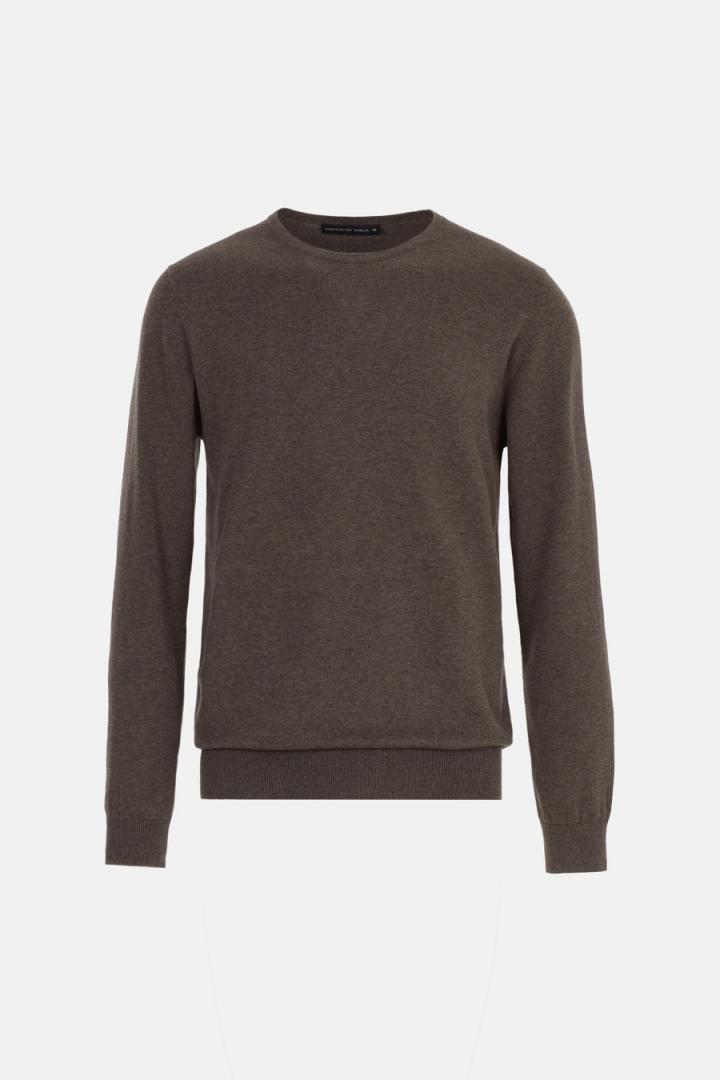 Jersey regular fit en punto de algodón peinado con cuello redondo y logo cubo bordado a tono en pecho. E…