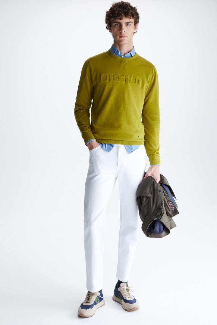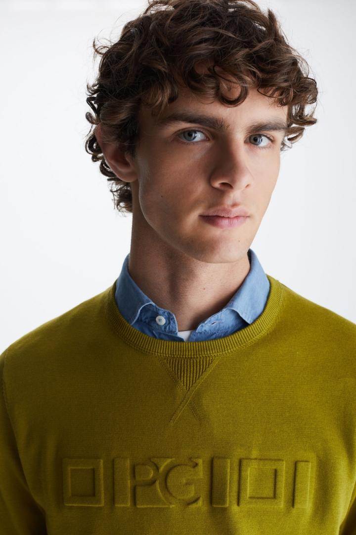 Jersey regular fit en punto de algodón pima con Cinta PG estampada en relieve a tono en el delantero. Cuello redondo con punto acanalado en pico, pespuntes a contraste en los hombros y puños y bajo acanalados. Logo cubo bordado a contraste en el bajo delantero. El modelo mide 190 cm y lleva una talla M.