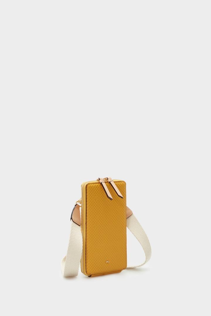 Bolso bandolera para móvil en piel con el grabado Stamp de micro cubos y logos PG. Asa bandolera extraíble de grosg…
