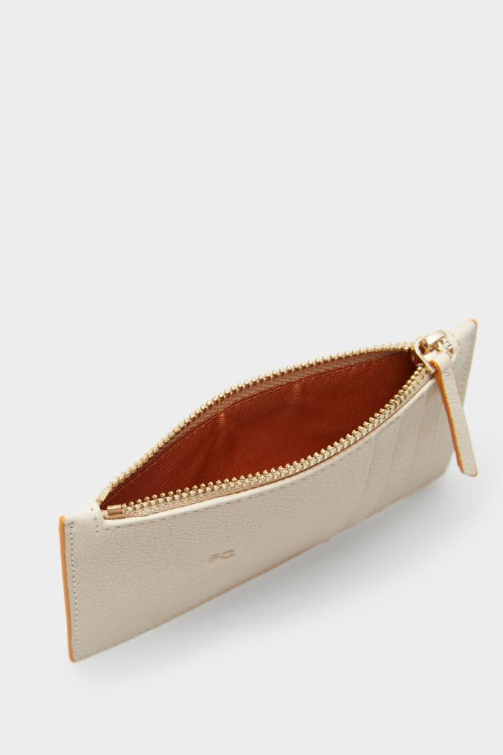 Monedero en piel con tarjetero. Detalle de logo PG grabado y lujados a contraste. Cierre de cremallera con tirado en piel a tono y 4 ranuras para tarjetas.