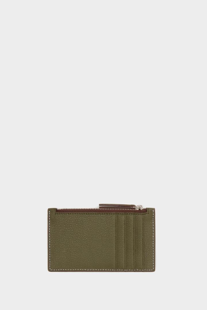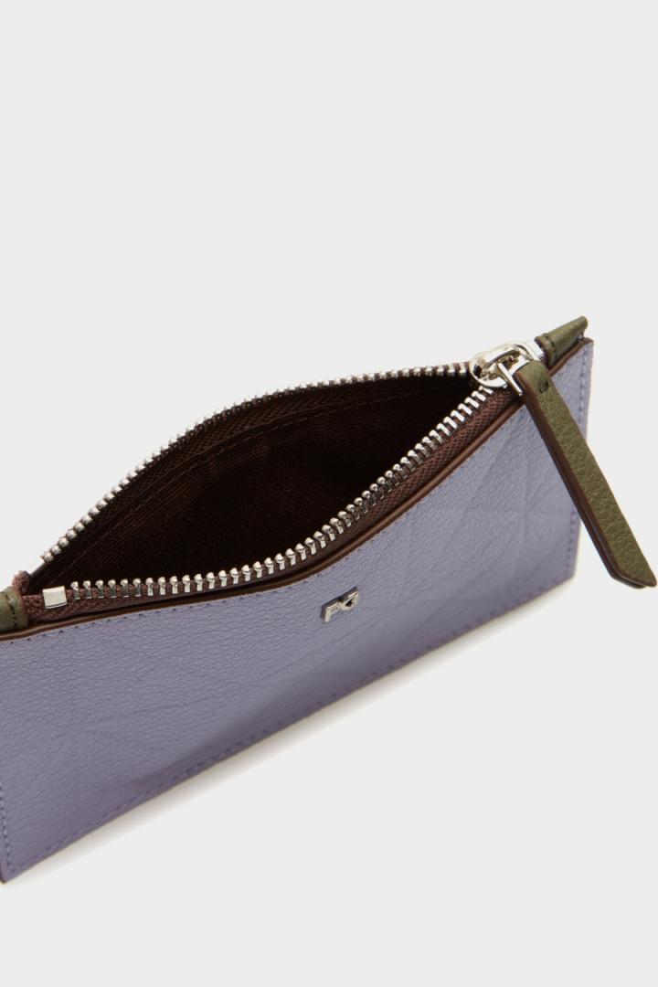 Monedero en piel con tarjetero con el Stamp Origami grabado. Detalle de logo PG metálico y lujados a contraste. Cierre de cremallera con tirador en piel y 4 ranuras para tarjetas.