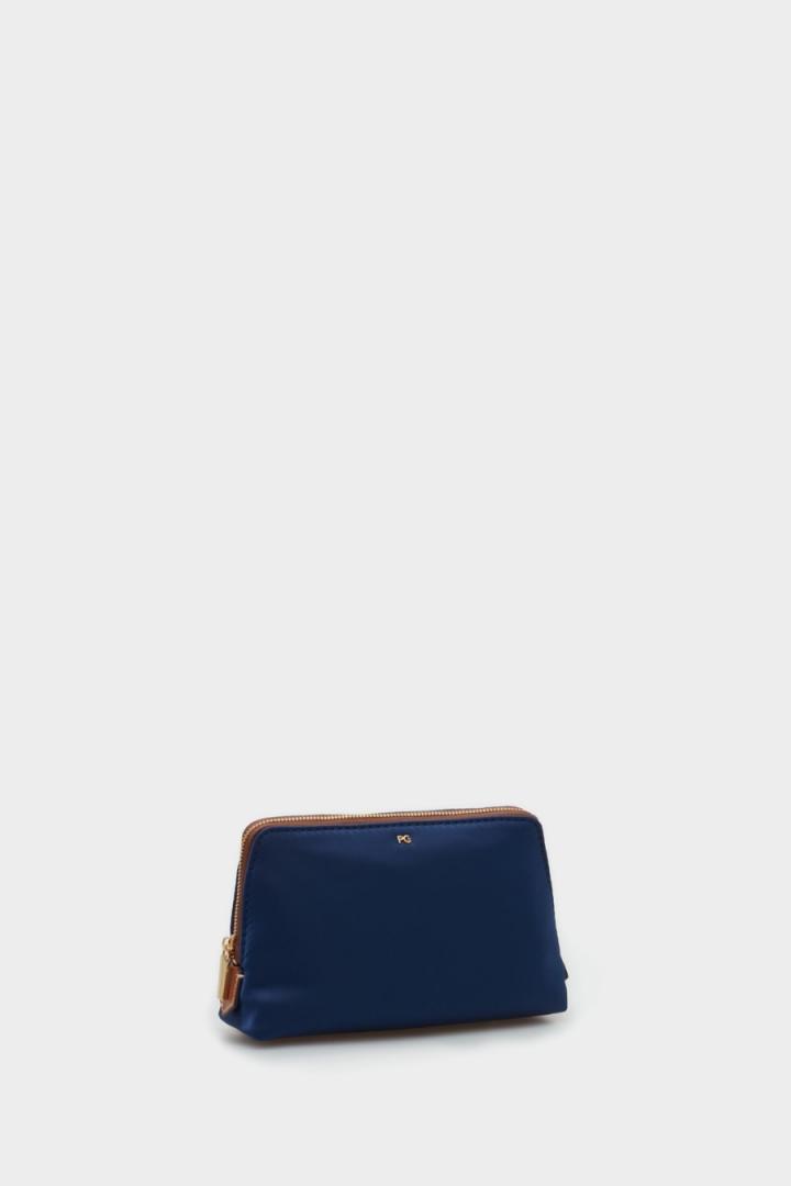 Neceser en tejido técnico con logo PG y logo cubo metálicos. Cierre de cremallera amplio a contraste con tirador metálico e interior con forro a tono.