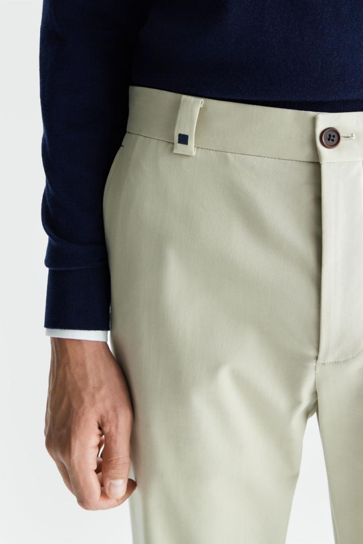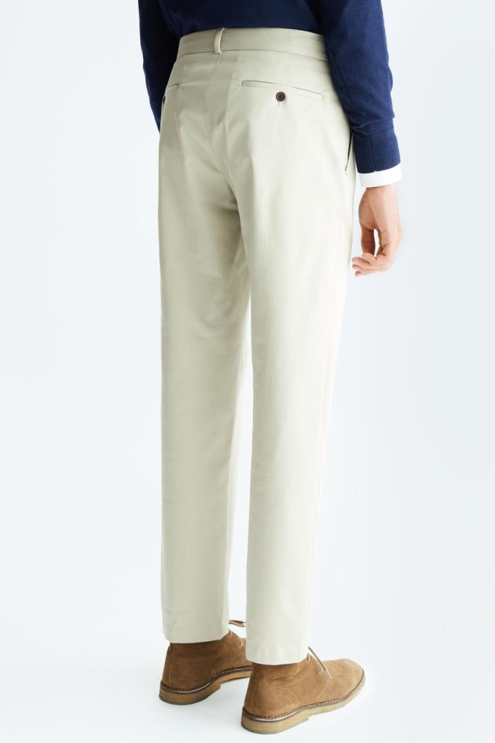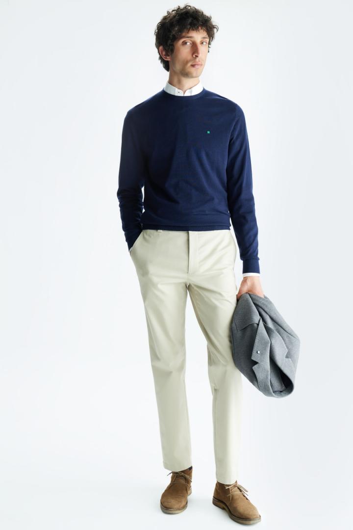 Pantalón chino regular fit en sarga de mezcla de algodón y liocel. Cierre de botón y cremallera oculta. Bolsillos laterales y dos bolsillos trasero…