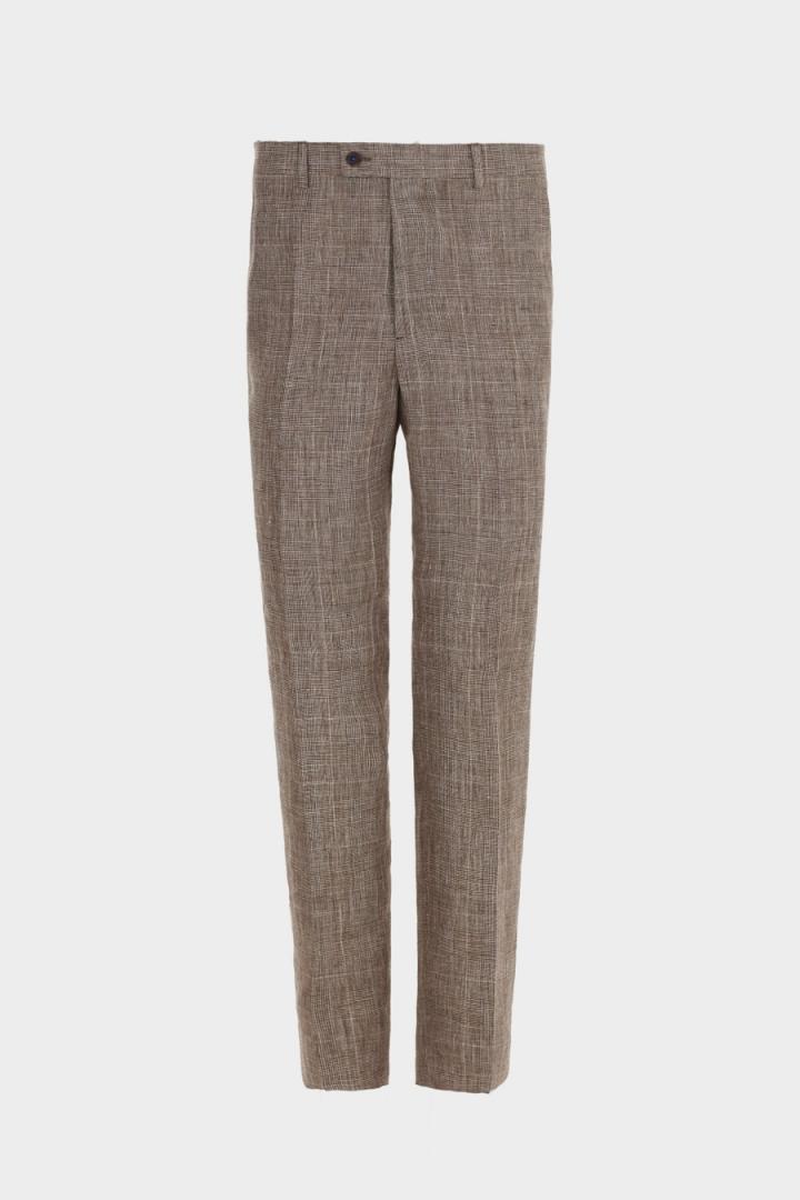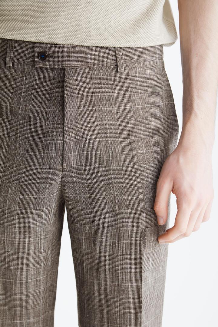 Hombre Purificacion Garcia PANTALON DE TRAJE CLASSIC FIT LINO CUADRO GALES Marrón/Crudo | Trajes y chaquetas