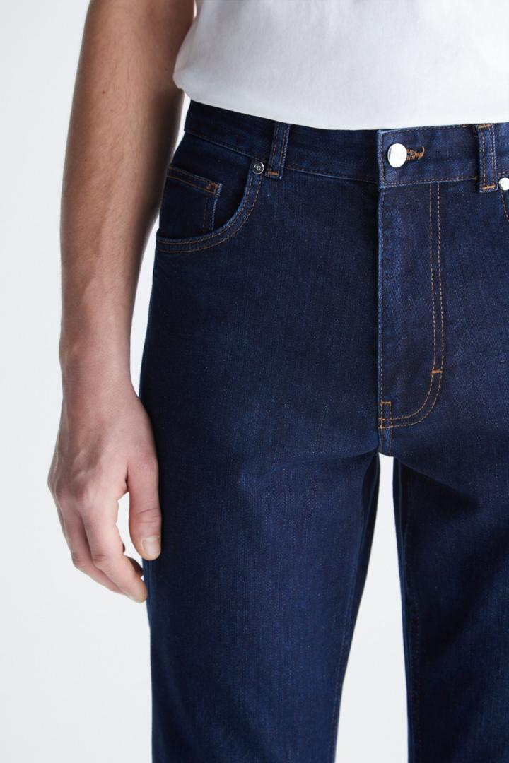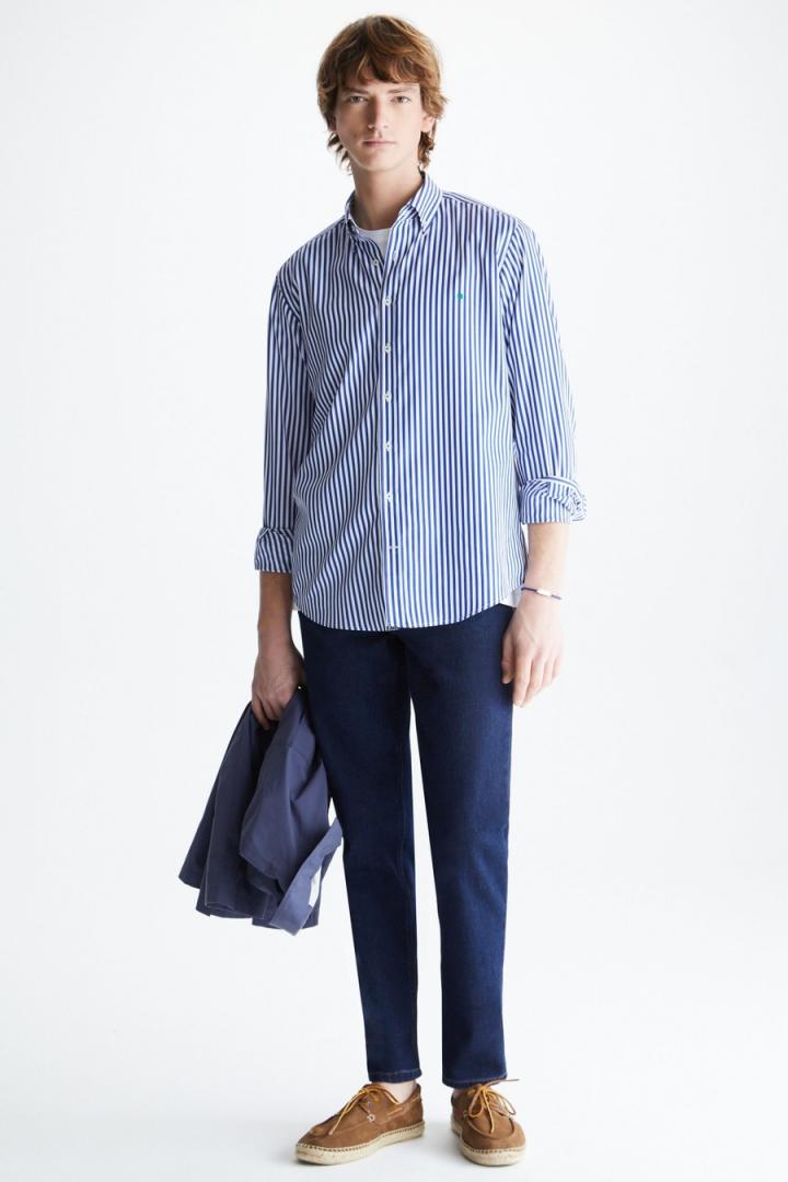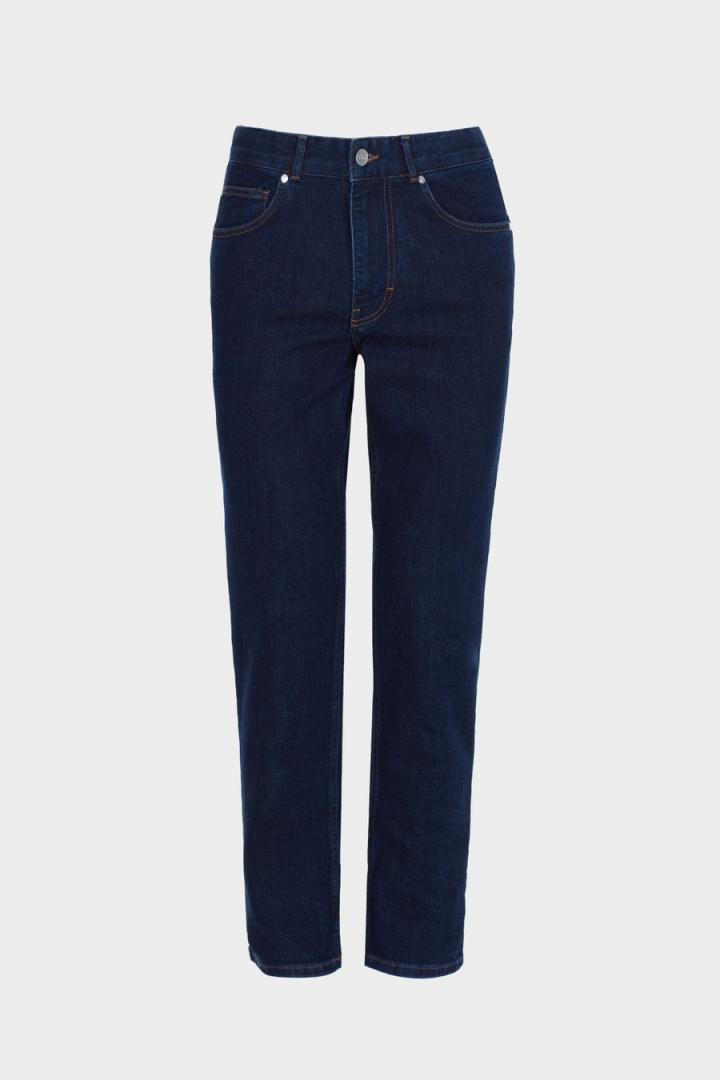 Pantalón vaquero slim fit en denim de algodón stretch. Cinco bolsillos, pespuntes a contraste y cierre de botón personalizado y cremallera a contraste. Etiqueta de piel en espalda con logo Purificacion Garcia y logo cubo a contraste en bolsillo trasero. El modelo mide 187 cm y lleva una talla 42.