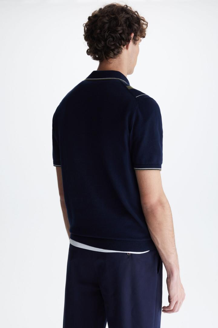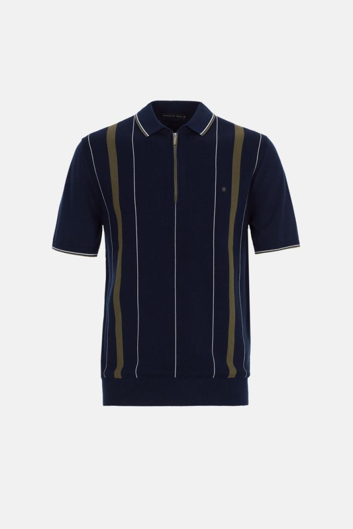 Polo regular fit en punto de algodón pima liso con diseño de rayas y cierre de cremallera hasta el pecho a tono. Cuello polo, manga corta y doble perfil a contraste en cuello y …