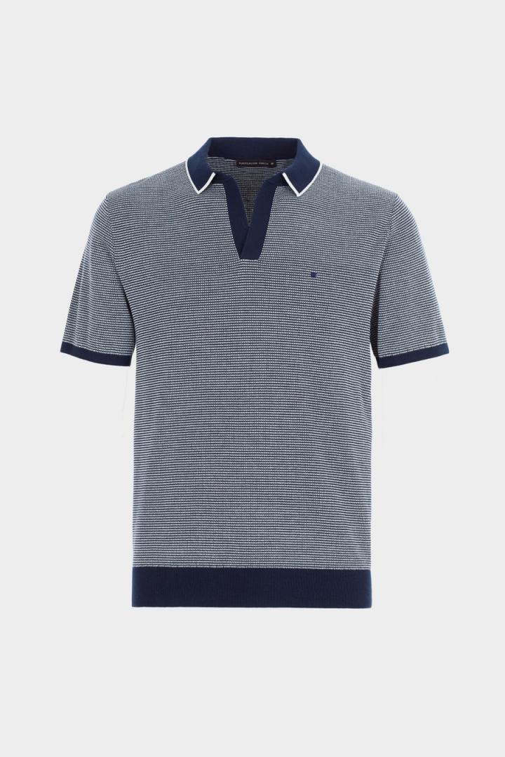 Hombre Purificacion Garcia POLO ESTRUCTURA ALGODON PIMA CUELLO ABIERTO Azul Marino/Crudo | Punto