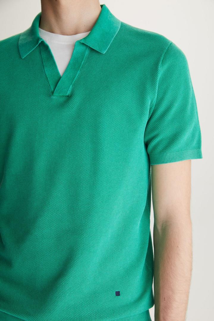 Polo regular fit en punto con estructura de algodón pima. Cuello polo abierto, manga corta y puño y bajo acanalados a tono…