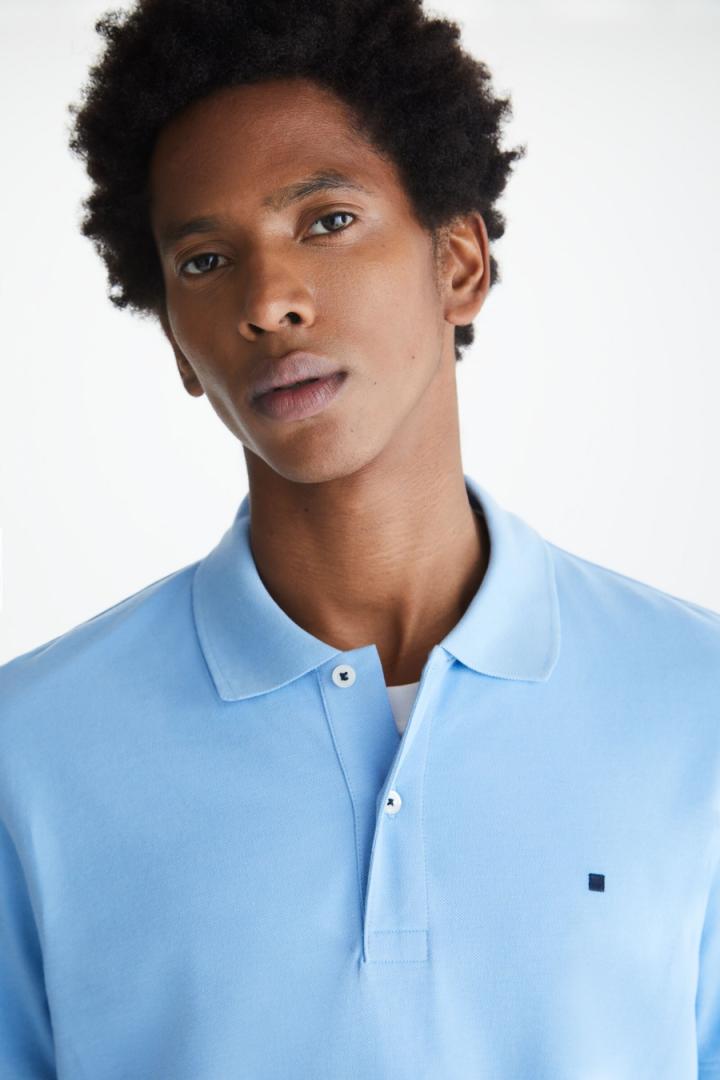 Polo regular fit en piqué de algodón. Cuello clásico con dos botones e hilo de botón a contraste, manga corta y aberturas laterales. Logo cubo bordado a contraste en pecho. El modelo mide 189 cm y lleva una talla M.