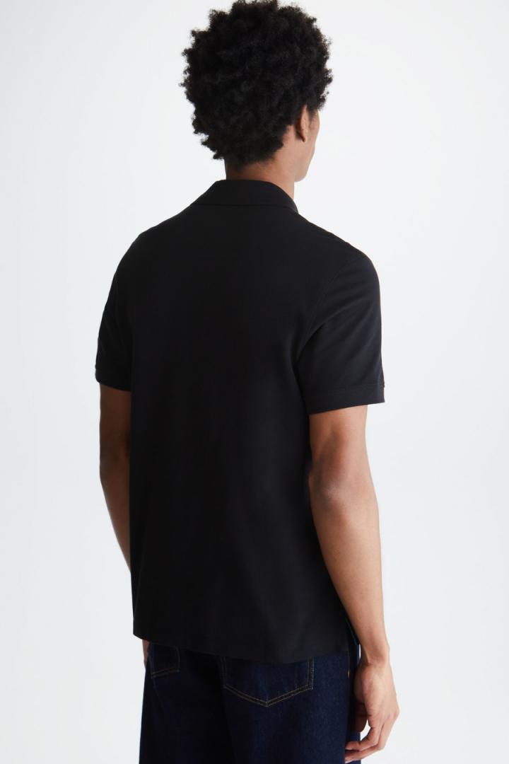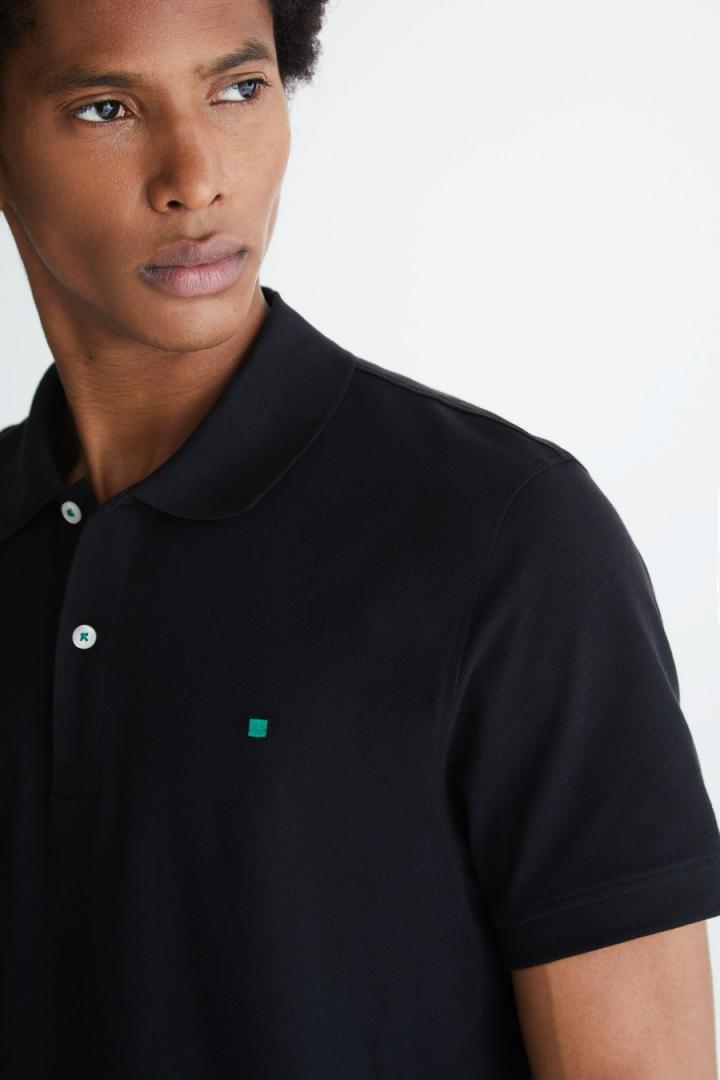 Polo regular fit en piqué de algodón. Cuello clásico con dos botones e hilo de botón a contraste, manga corta y aberturas laterales. Logo cubo bordado a contraste en pecho. El modelo mide 189 cm y lleva una talla M.