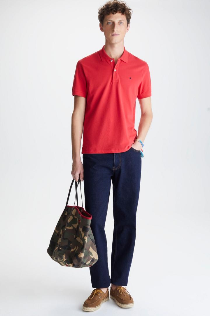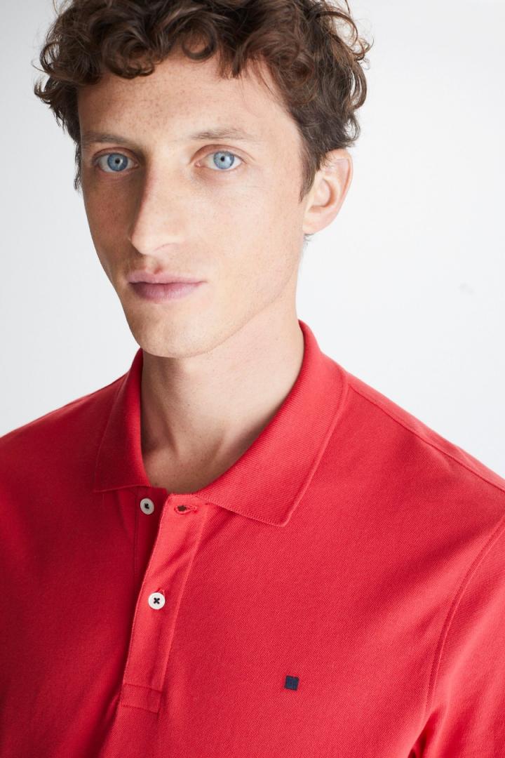 Polo regular fit en piqué de algodón. Cuello clásico con dos botones e hilo de botón a contraste, manga corta y aberturas laterales. Logo cubo bordado a contraste en pecho. El modelo mide 190 cm y lleva una talla M.