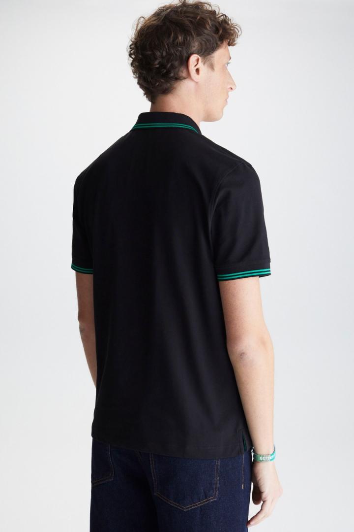 Polo regular fit en piqué de algodón stretch con cierre de cremallera invisible hasta el pecho con tirador de cuerda a contraste y doble raya a contraste…