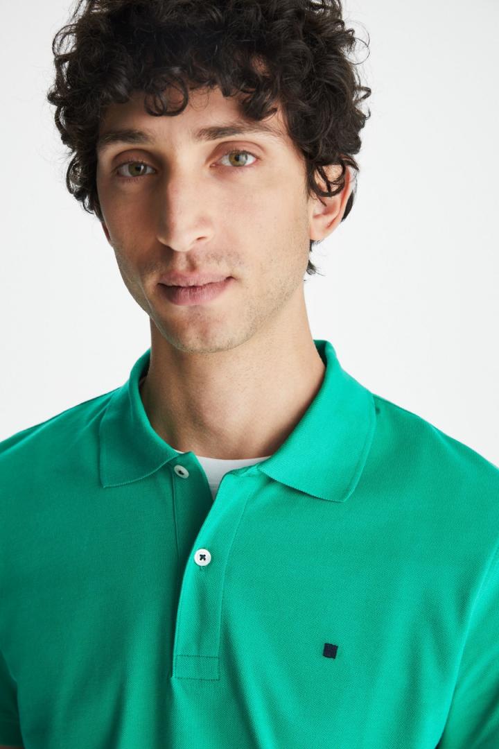 Polo regular fit en piqué de algodón. Cuello clásico con dos botones, manga corta y aberturas laterales. Logo cubo bordado a contraste en pecho. El modelo mide 188 cm y lleva una talla S.