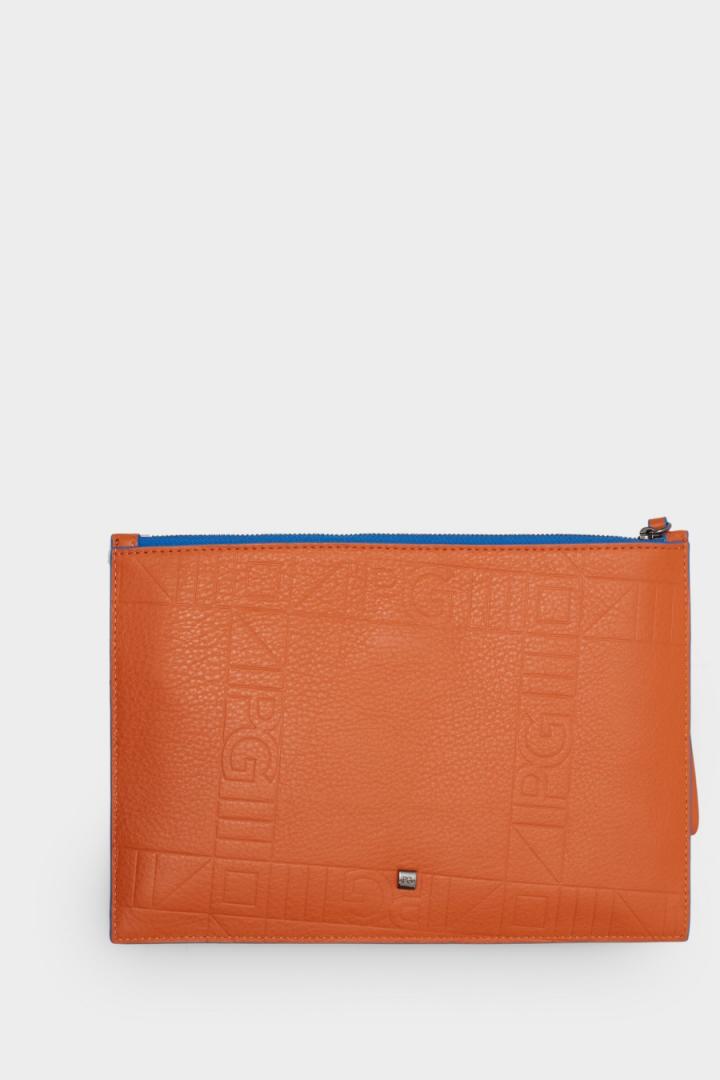 Pouch grande en piel con grabado Cinta PG y lujado a contraste. Cierre de cremallera con tirador de pi…