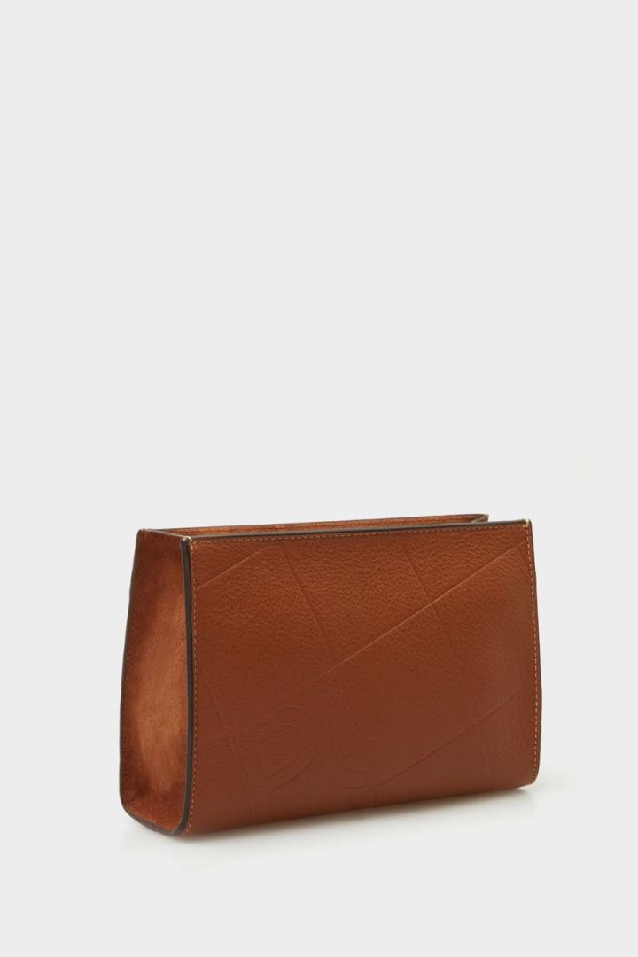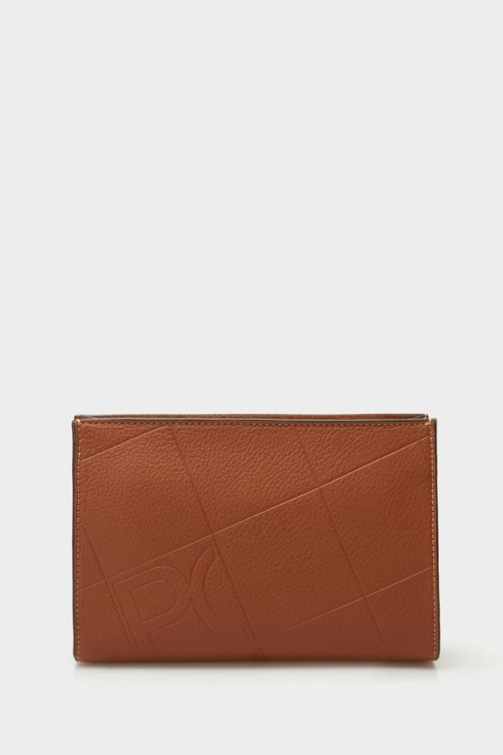 Pouch mediano en piel con grabado Stamp de cubos y logos PG y lujado a contraste. Cierre de cremallera con tirador de piel. Interior con forro completo de algodón.