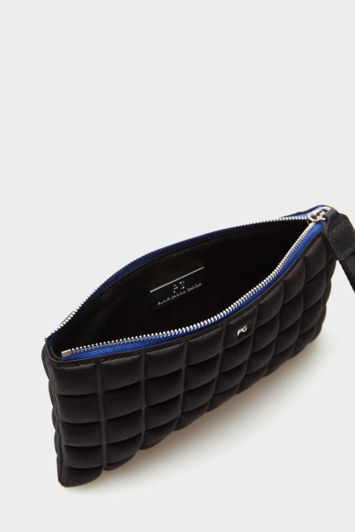 Pouch en neopreno con acolchado de cubos y logo PG metálico. Cierre de cremallera a tono y tirador con estampado geométrico PG….