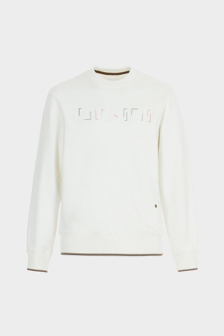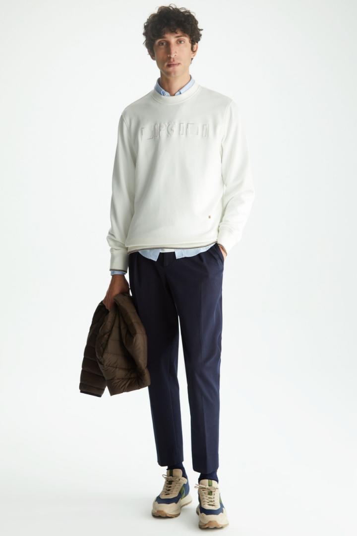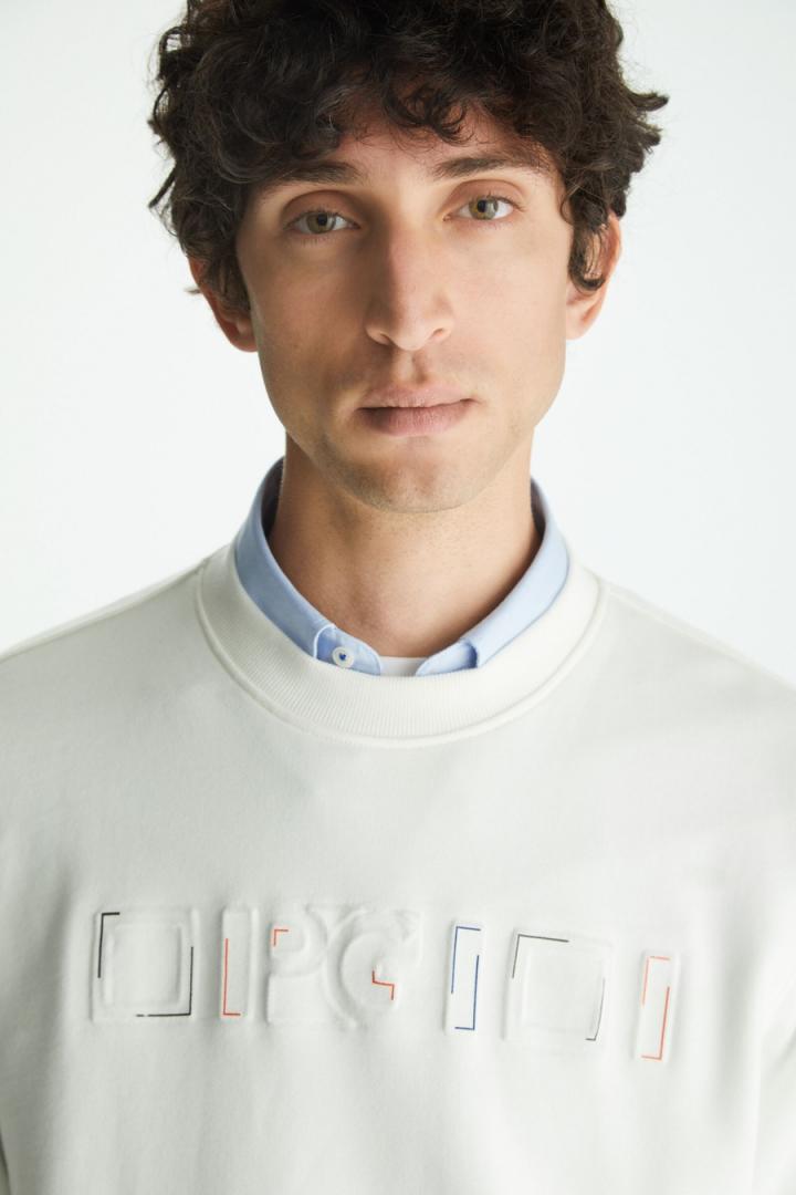 Sudadera regular fit en felpa de algodón con Cinta PG estampada en relieve en el pecho y contornos a color. Cuello redondo, manga larga y doble raya a contraste en puños y bajo. Cuello, puños y bajo acanalados y logo cubo bordado a contraste en bajo delantero. El modelo mide 188 cm y lleva una talla M.