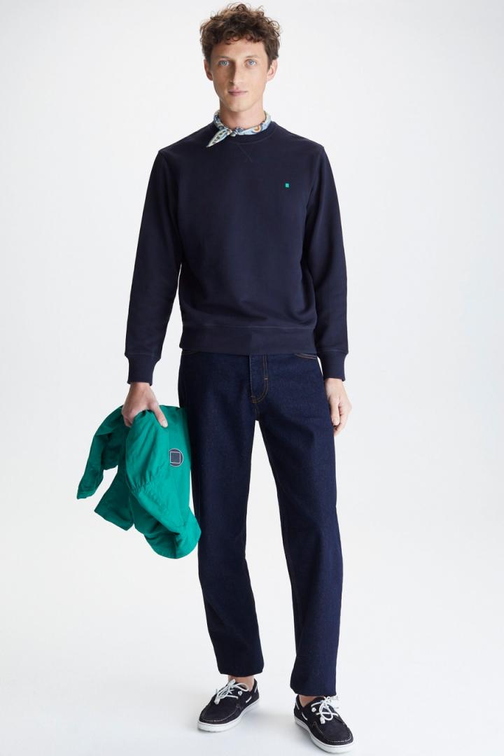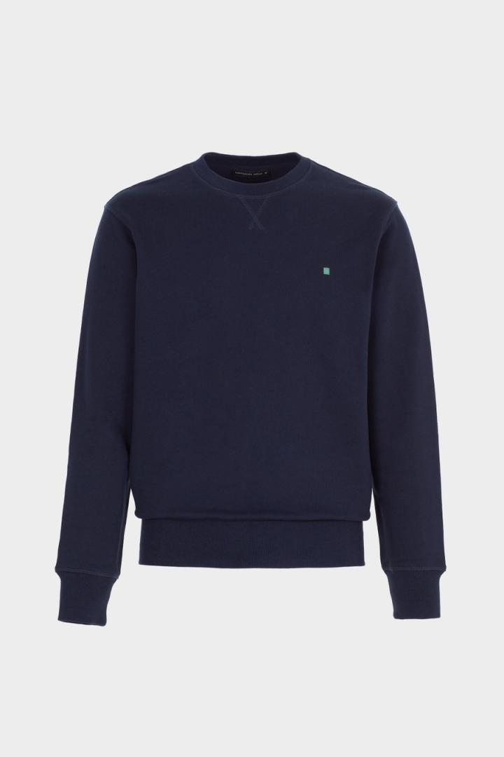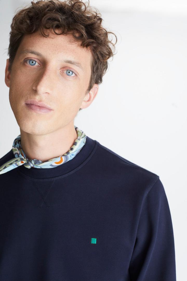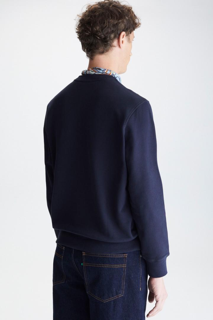 Sudadera regular fit en felpa de algodón. Cuello redondo con triángulo decorativo, manga larga y cuello, puños y bajo acanalados. Cubo bordado a contraste en el pecho. El modelo mide 190 cm y lleva una talla M.