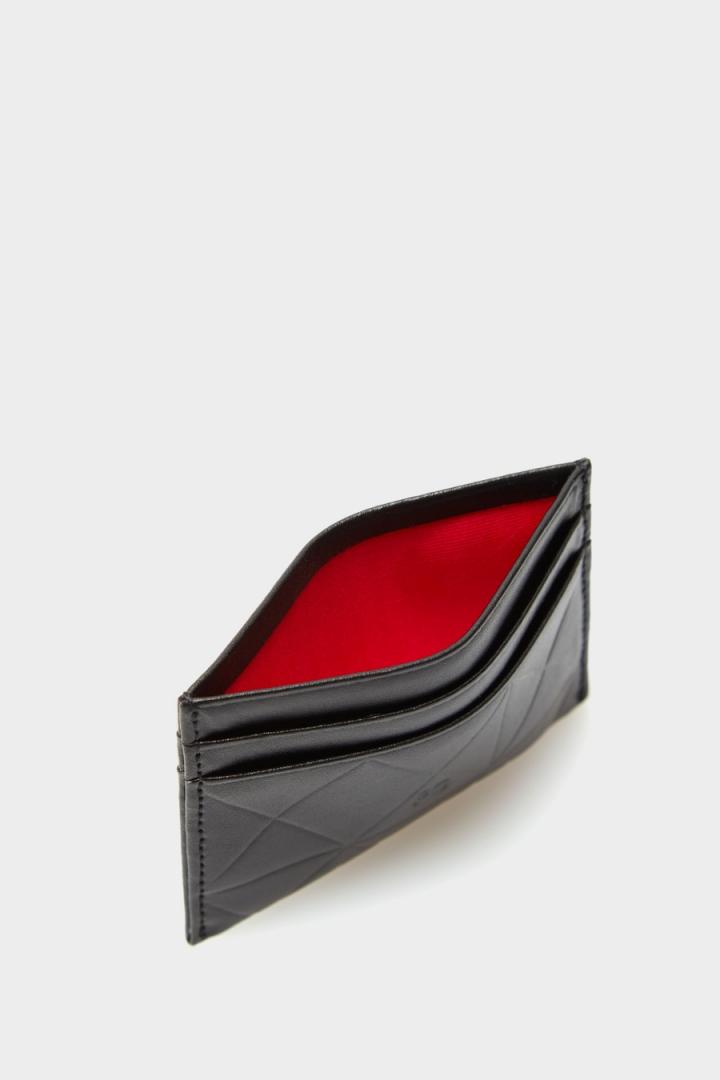 Tarjetero en piel grabada con el Stamp Origami. Cuatro ranuras para tarjetas y compartimento central.
