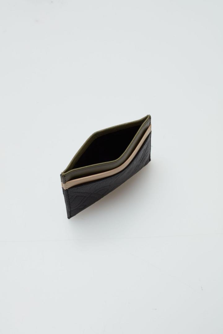 Tarjetero en piel con grabado Stamp Gutenberg. Cuatro ranuras para tarjetas y compartimento central.
