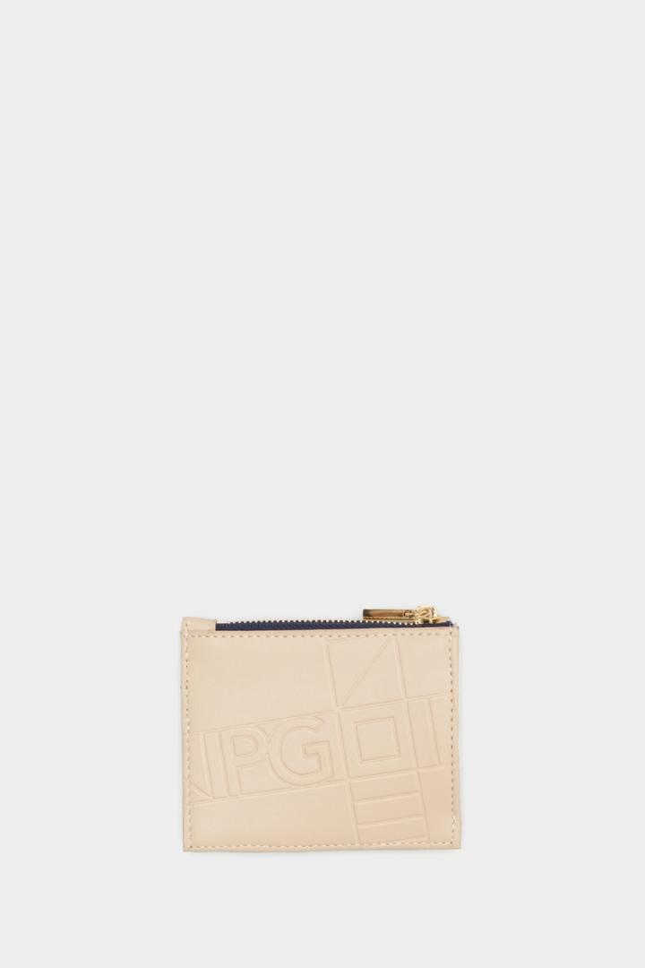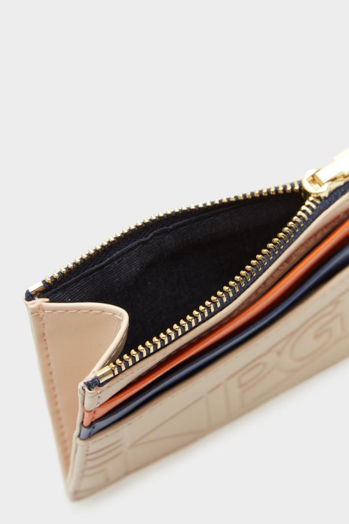 Tarjetero en piel con grabado Stamp de Cinta PG. Monedero con cierre de cremallera y tres ranuras para tarjetas.