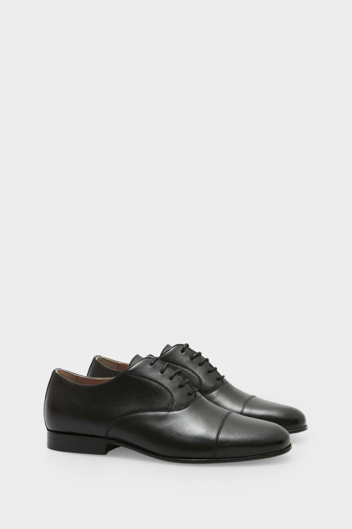 Zapato clásico de piel en color negro con cierre de cordones. Plantilla de piel a contraste y suela de goma.