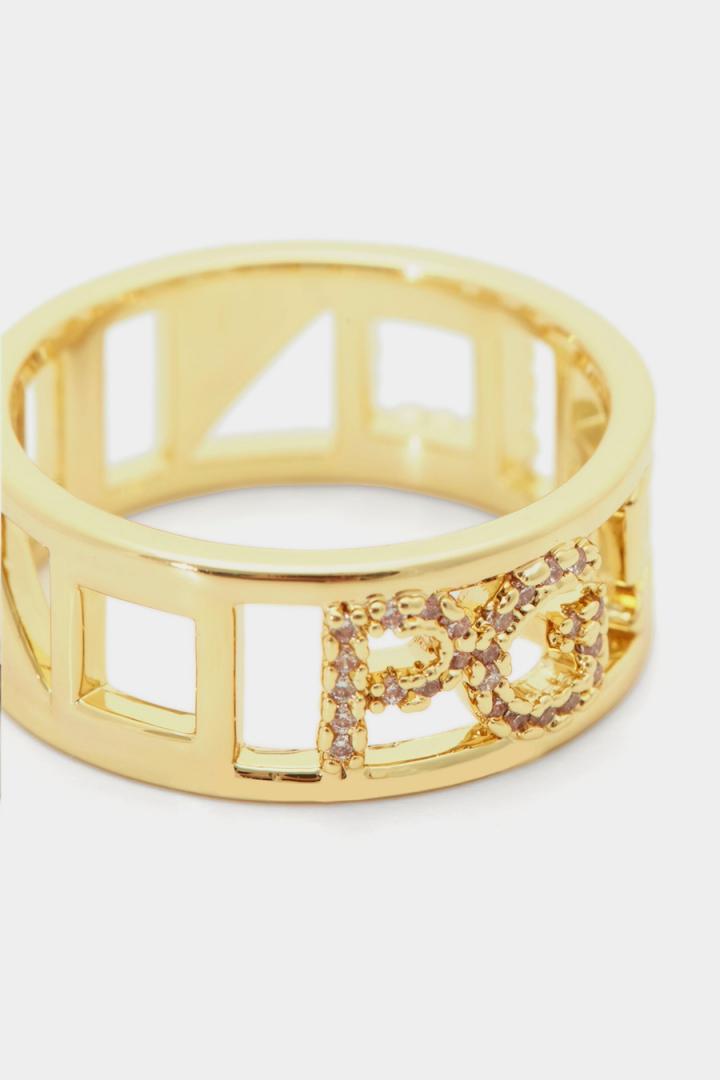 Anillo rígido bañado en oro con diseño Cinta PG y detalle de cristales.
