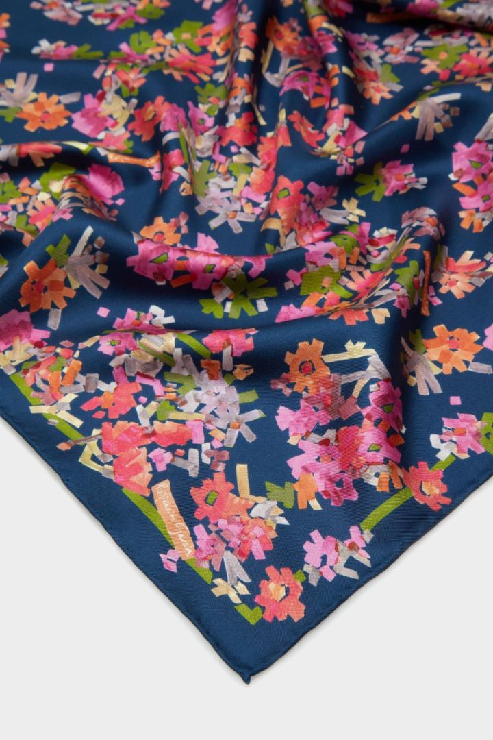 Bandana en seda con estampado floral Bohemia y bordes a contraste….