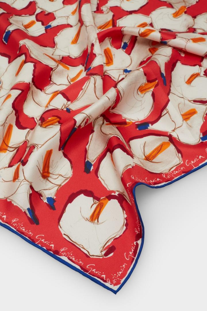 Bandana de seda con estampado floral de calas.