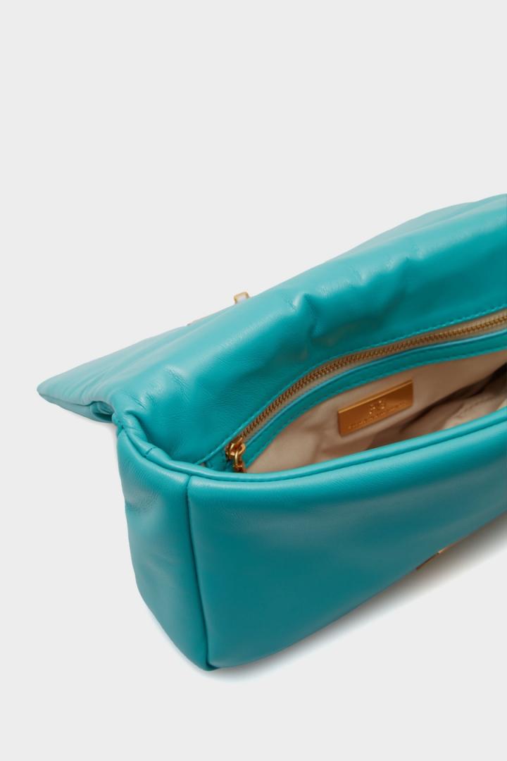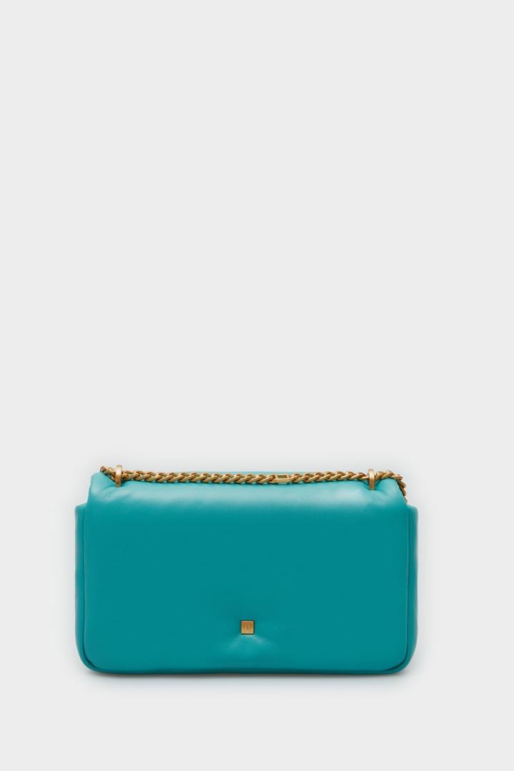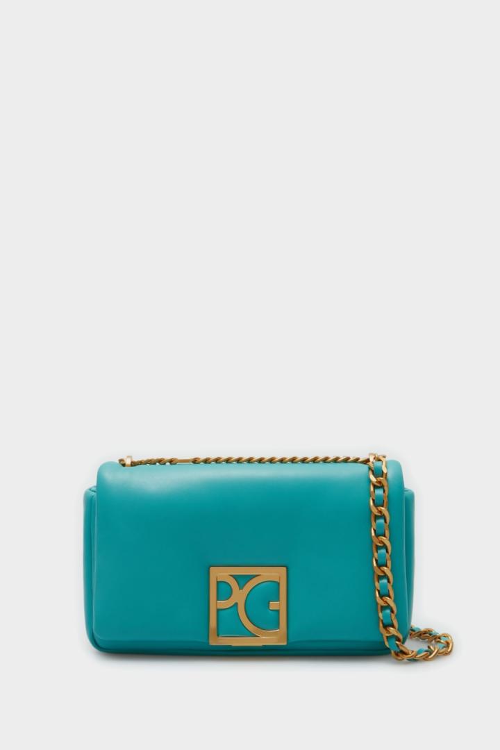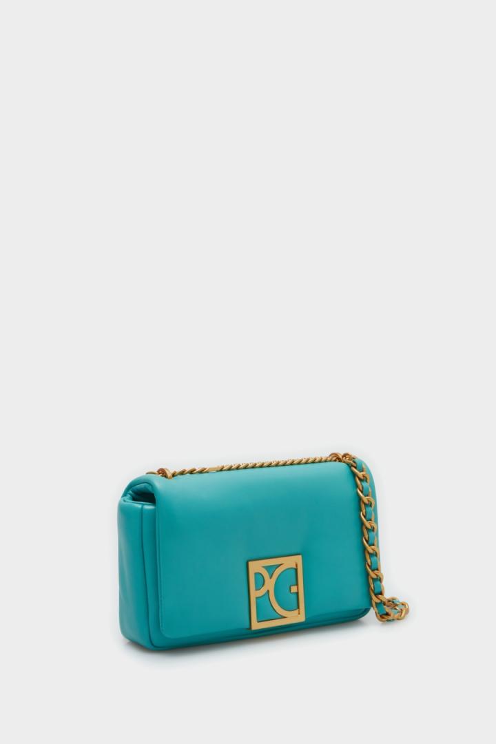 Bolso bandolera pequeño en piel de napa. Cierre de solapa personalizado con placa metálica en forma de Cubo PG y asa multiposición bandolera y de hombro de cadena trenzada con piel. Interior con forro completo y un bolsillo con cierre de cremallera. Detalle de cubo metálico con logo PG grabado en la parte posterior.