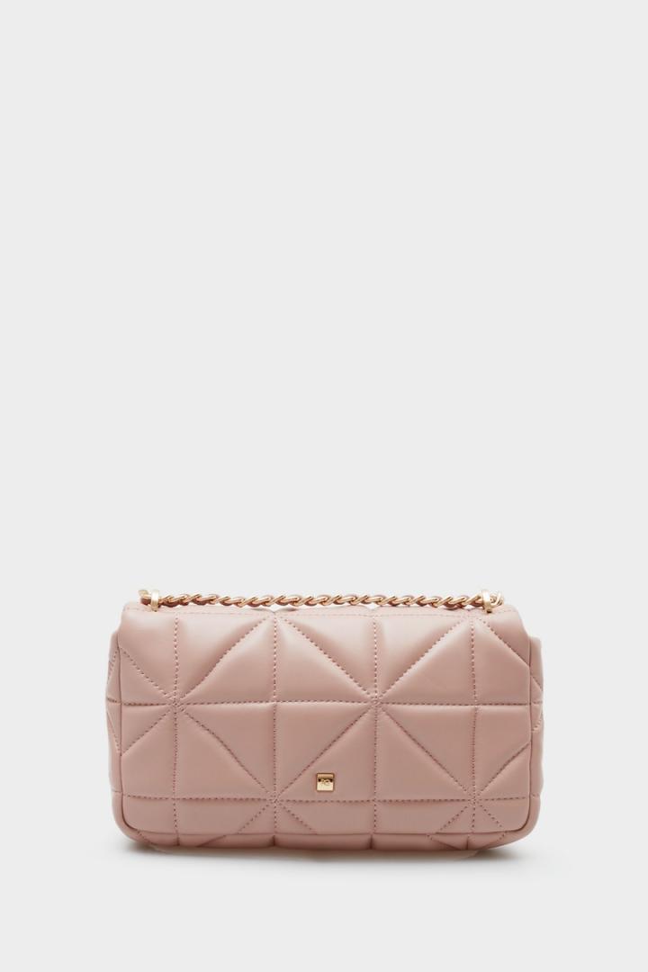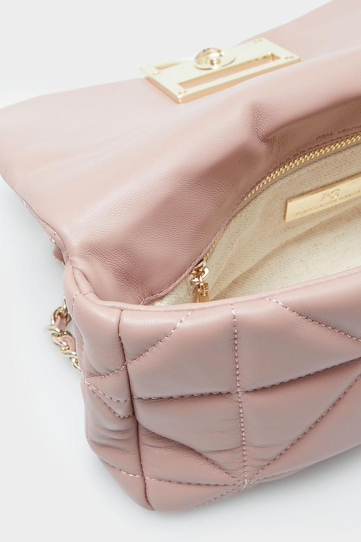 Bolso en piel napa con diseño acolchado Pop Origami. Cierre de solapa con metálica en forma de cubo. Asa combinada de cadena y piel.