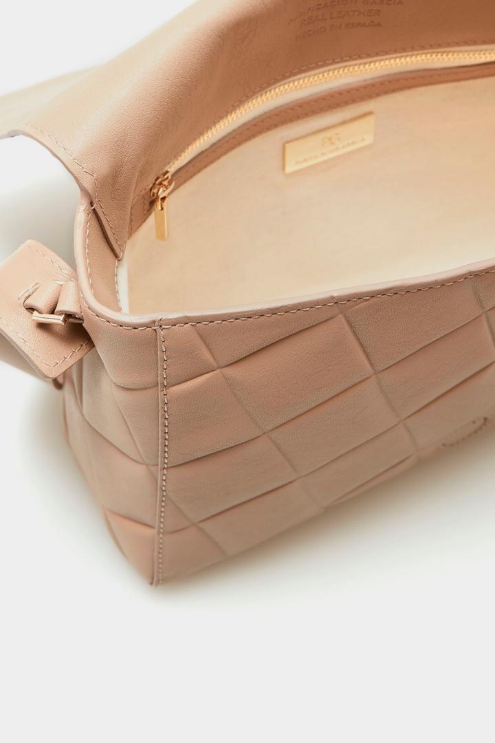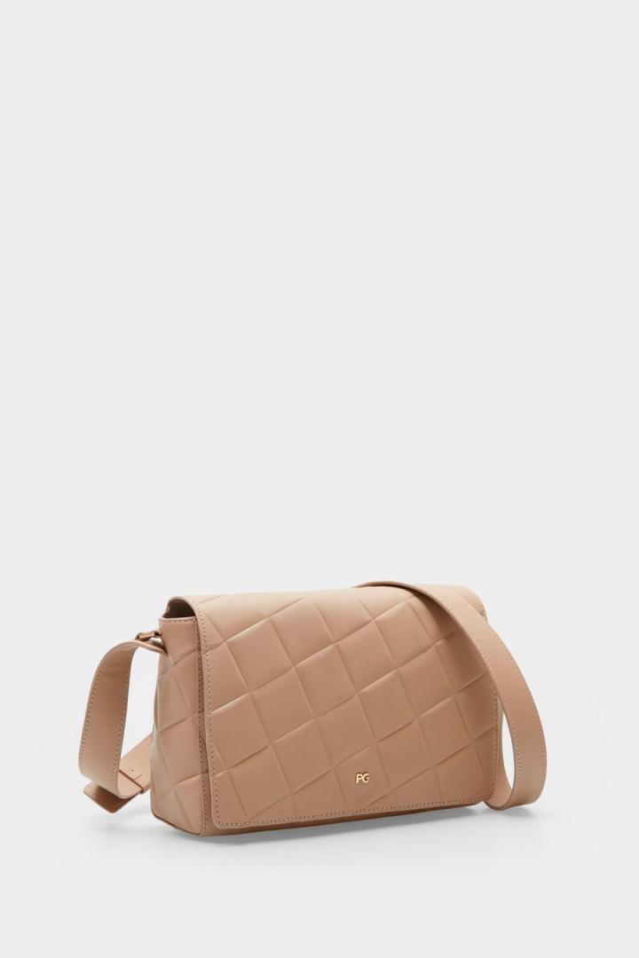 Bolso bandolera en piel de alta calidad con el grabado Stamp de cubos y efecto trenzado. Cada bolso se caracteriza por un tipo de piel distinta, seleccionada para potenciar su color. Cierre de solapa y asa bandolera ajustable. Interior con forro completo de algodón y un bolsillo con cremallera.