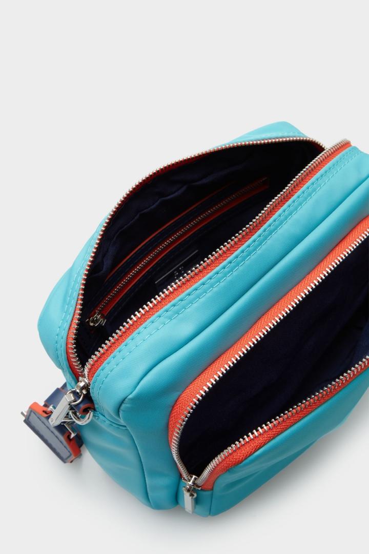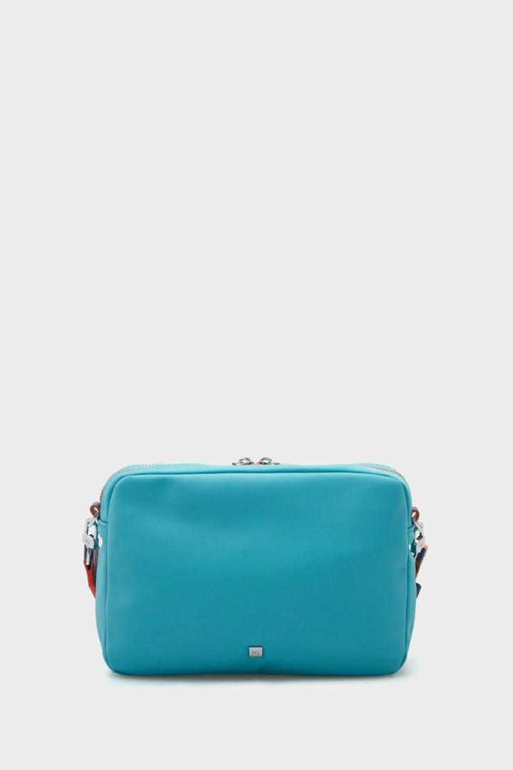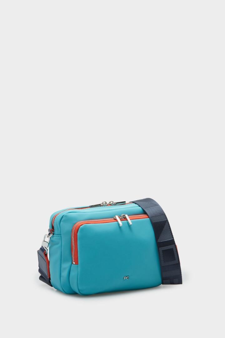 Bolso bandolera pequeño en nylon. Asa bandolera regulable en grosgrain a contraste con Cinta PG estampada. Cierre de cremallera a contraste y tirador metálico. Interior con forro completo, un bolsillo interior y un bolsillo exterior con cremallera. Detalle de logo PG y cubo metálico con logo PG grabado en la parte delantera y posterior.