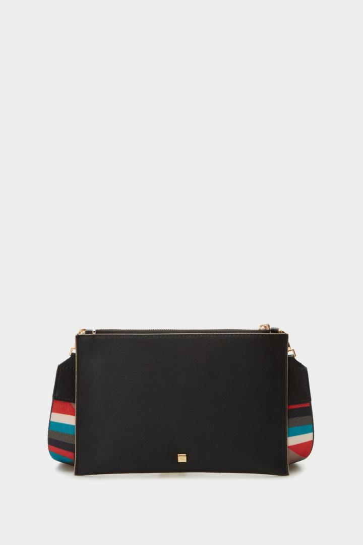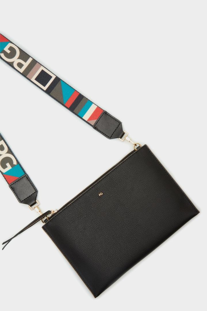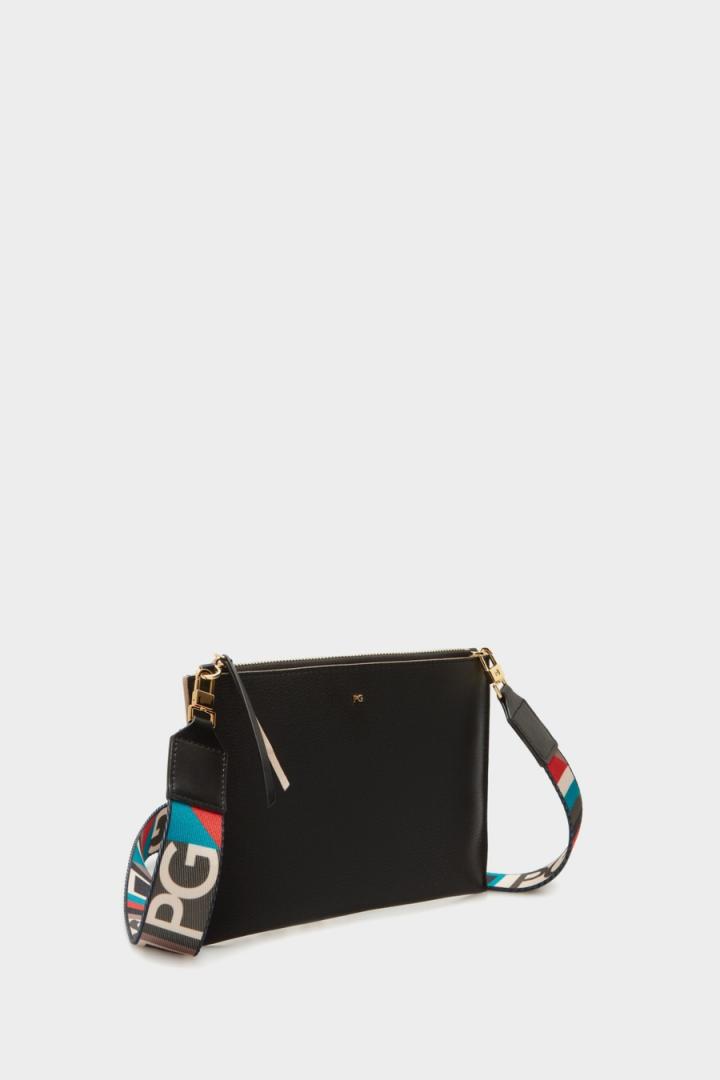 Bolso bandolera en piel con asa bandolera extraíble de grosgrain estampado. Cierre de cremallera e interior en piel a contraste.