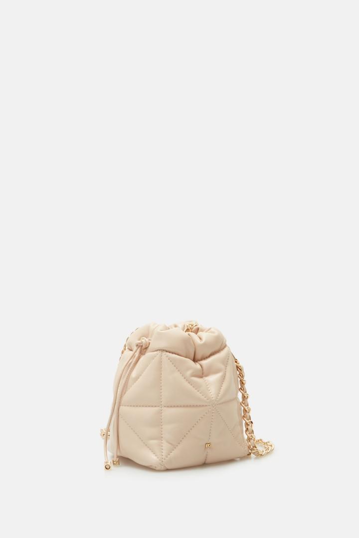 Bolso bombonera pequeño en piel de napa con diseño acolchado Pop Origami. Asa bandolera de cadena y piel y cierre de frunce. Interior con forro completo.