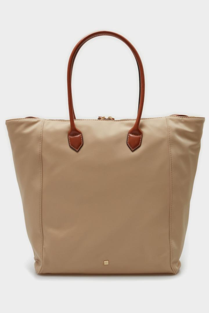 Bolso de hombro grande en tejido técnico liso con pespuntes a tono, logo PG y logo cubo metálicos. Dos asas de hombro en piel a contraste y cierre de cremallera con doble tirador. Forro interior completo con un bolsillo con cremallera.