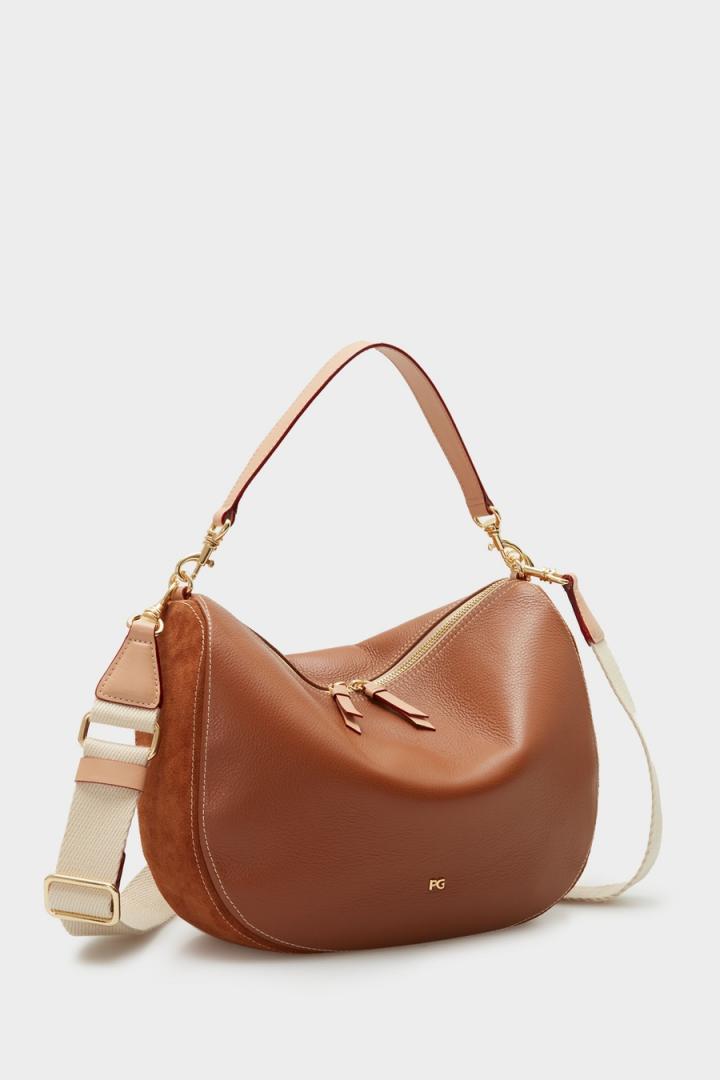 Bolso de hombro en piel con laterales y base en ante y pespuntes a contraste. Asa de hombro extraíble en piel a contraste y asa bandolera regulable en grosgrain. Cierre de cremallera de doble tirador en piel con lujados a contraste. Interior con forro completo de algodón y lino y un bolsillo con cierre de cremallera. Detalle de logo PG metálico en parte delantera y trasera.