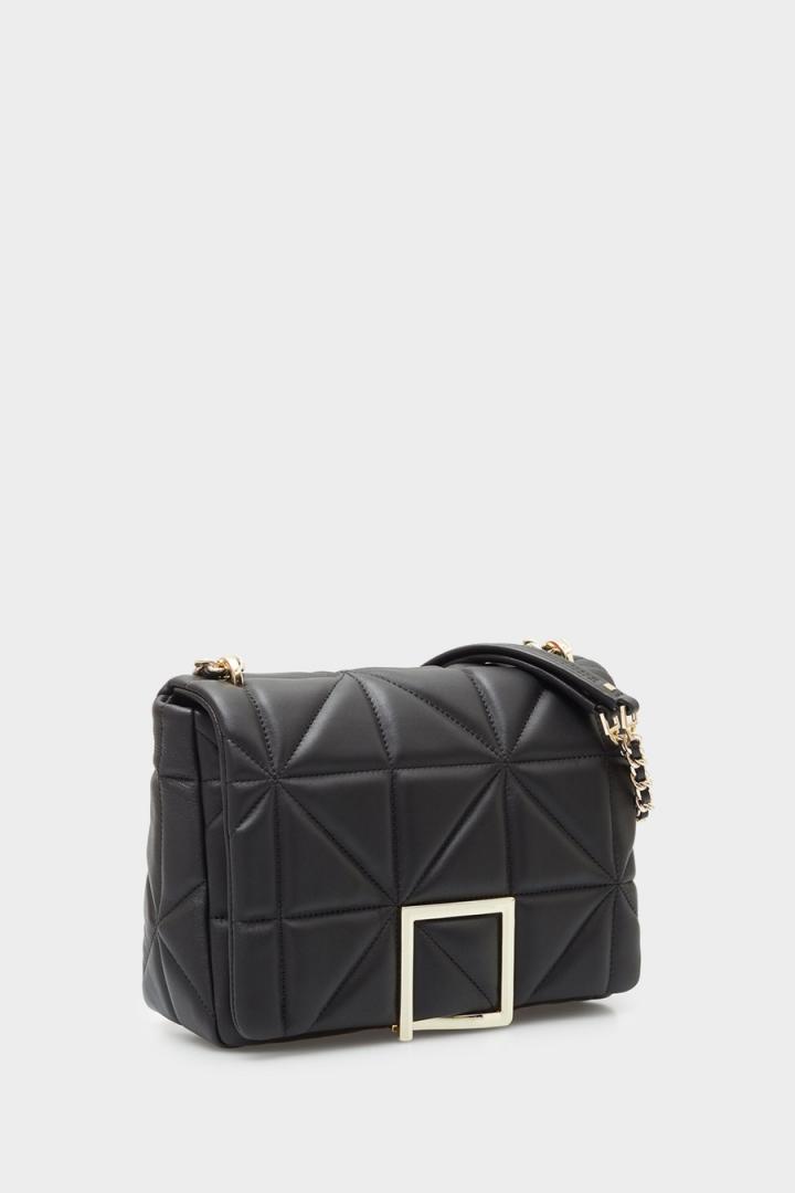 Bolso de hombro en piel napa con diseño acolchado Pop Origami. Cierre de solapa personalizado con metálica en forma de cubo, asa de cadena combinada con hombrera en piel y un bolsillo interior con cremallera.