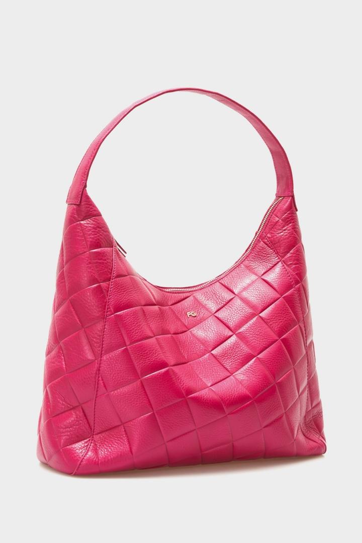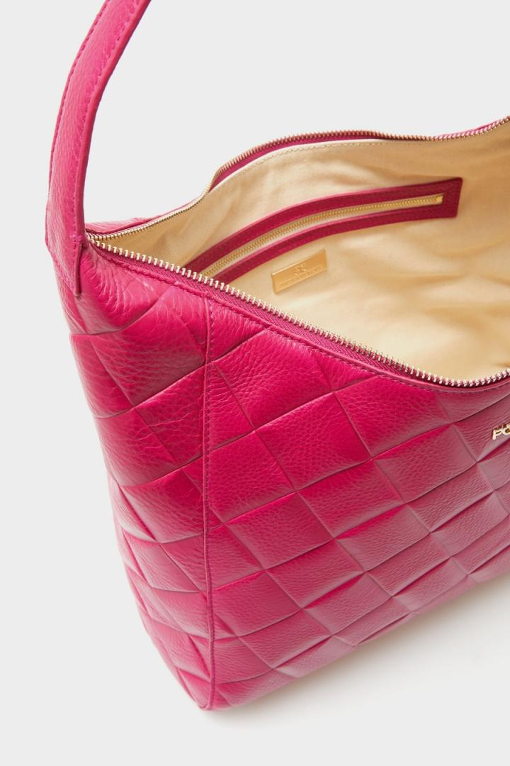 Bolso de hombro en piel de alta calidad con el grabado Stamp de cubos y efecto trenzado. Cada bolso se caracteriza por un tipo de piel distinta, seleccionada para potenciar su color. Cierre de cremallera y asa de hombro en piel a tono. Interior con forro completo de algodón y un bolsillo con cremallera.