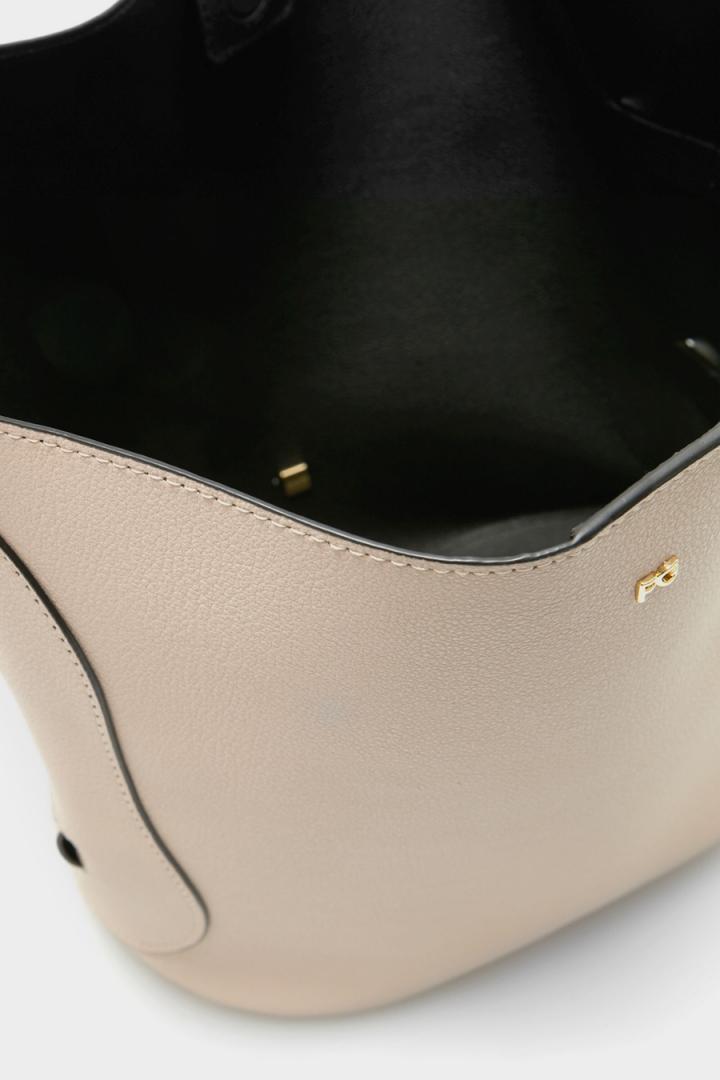 Bolso de hombro en piel con detalle de ocho troquelado en los laterales y metálica PG. Cierre de imán oculto. Asa de hombro con lujados a tono e interior sin forro.