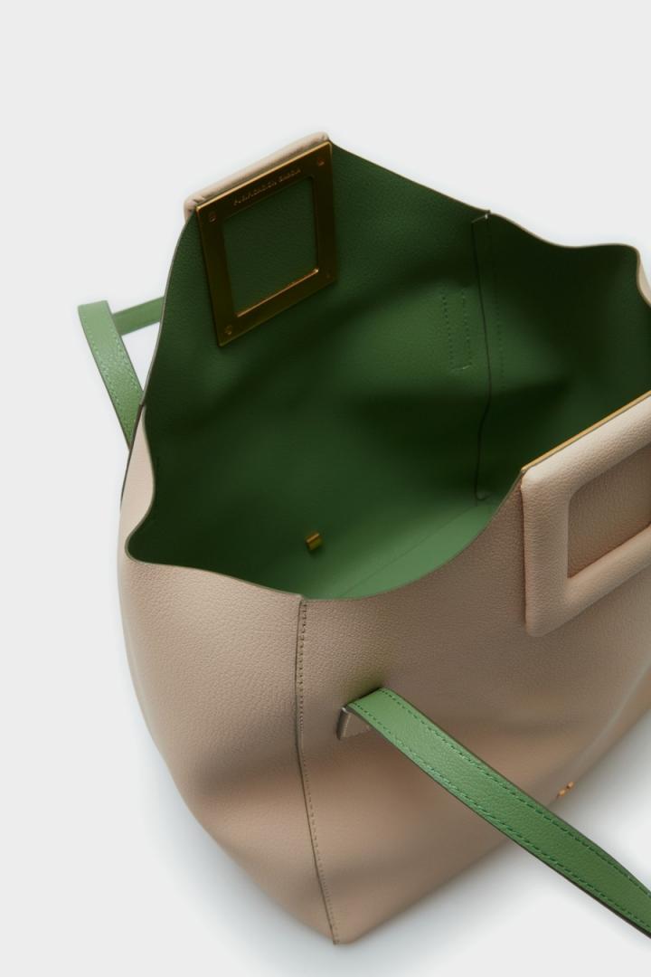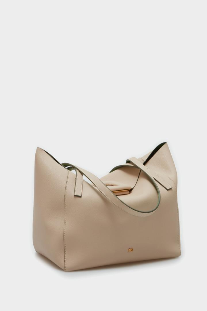 Bolso de hombro grande en piel con lujado a contraste. Cierre de imán en forma de cubo troquelado acolchado y asa de hombro de piel a tono. Interior de piel a contraste, detalle de logo PG metálico en la parte delantera y cubo metálico con logo PG grabado en la parte posterior.